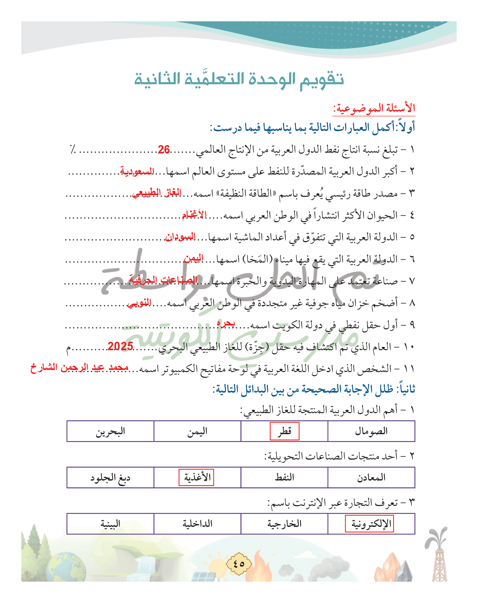 تقويم الوحدة الثانية