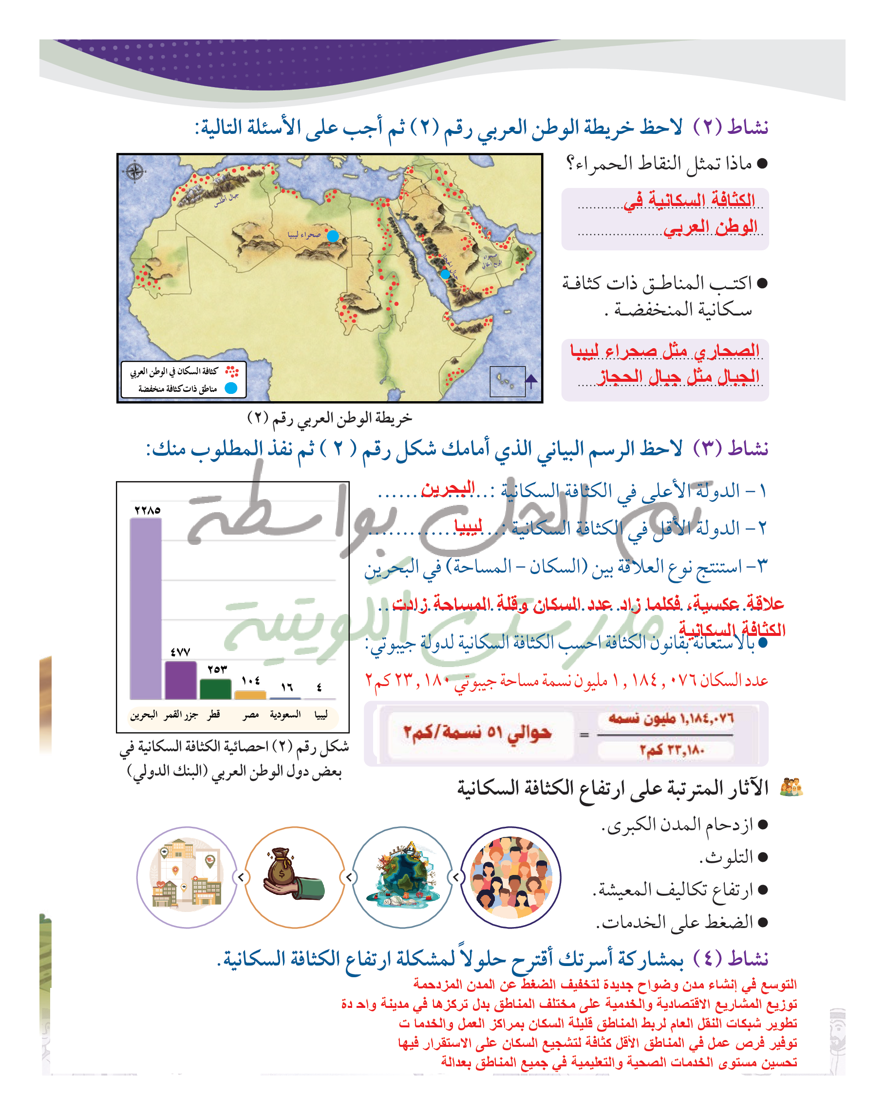 توزيع وكثافة السكان في الوطن العربي