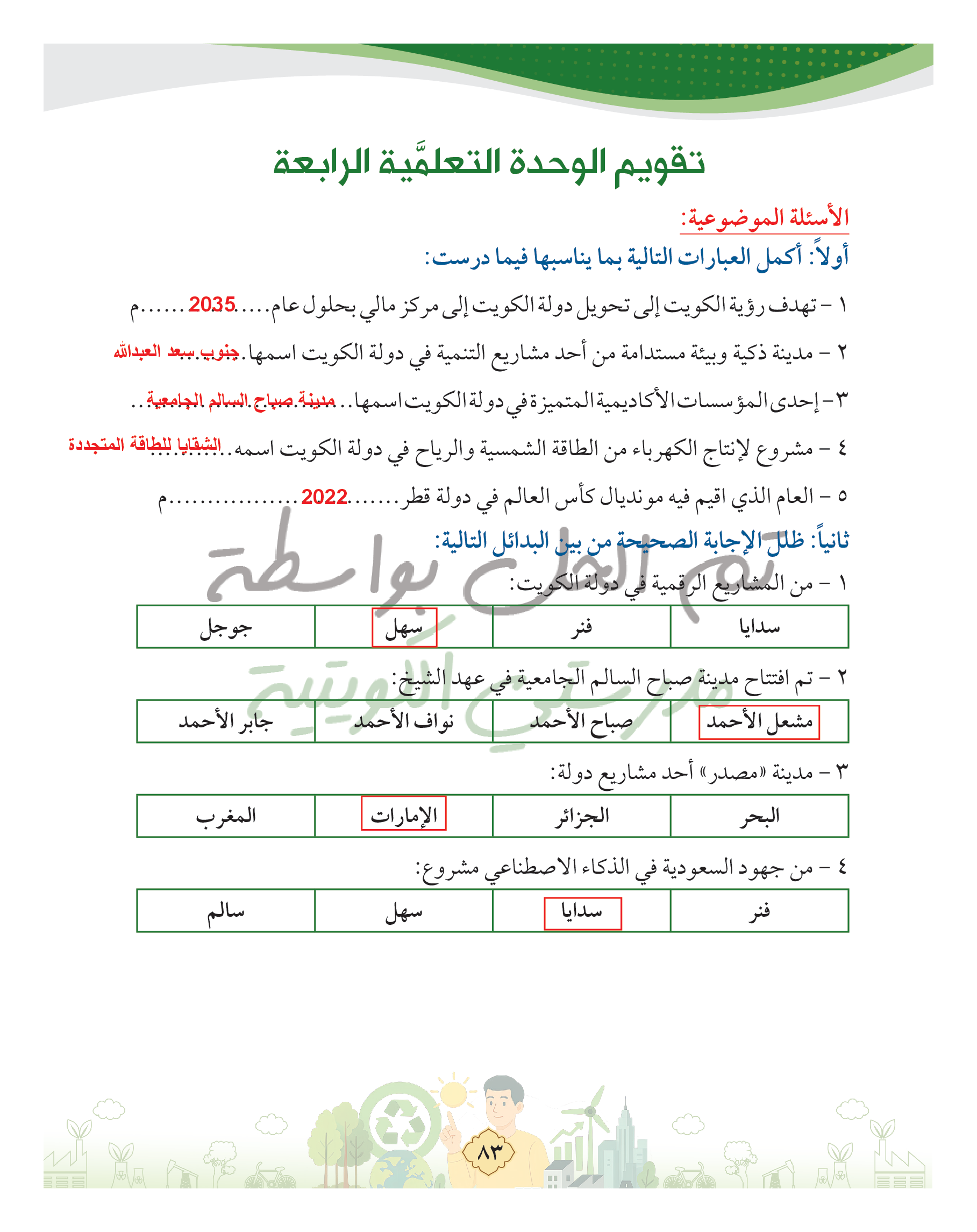 تقويم الوحدة الرابعة