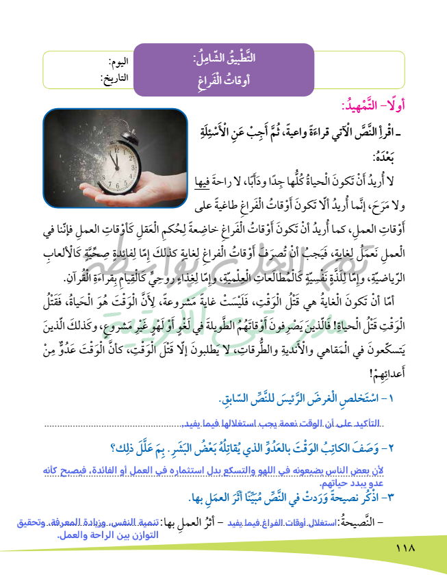 التطبيق الشامل (أوقات الفراغ)