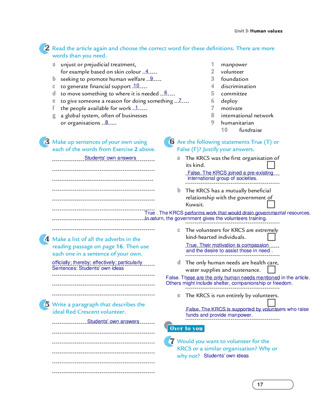 Self assessment answer key