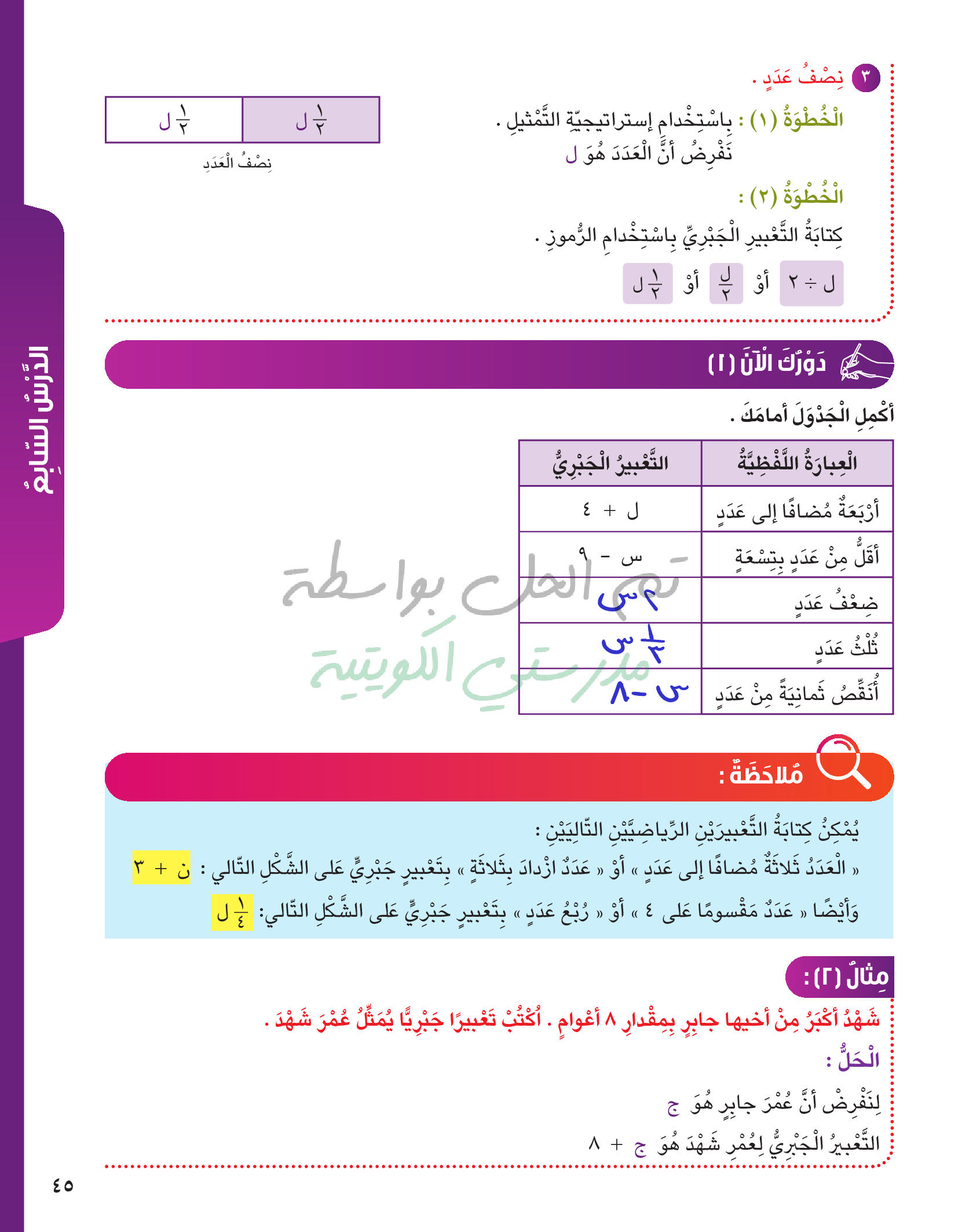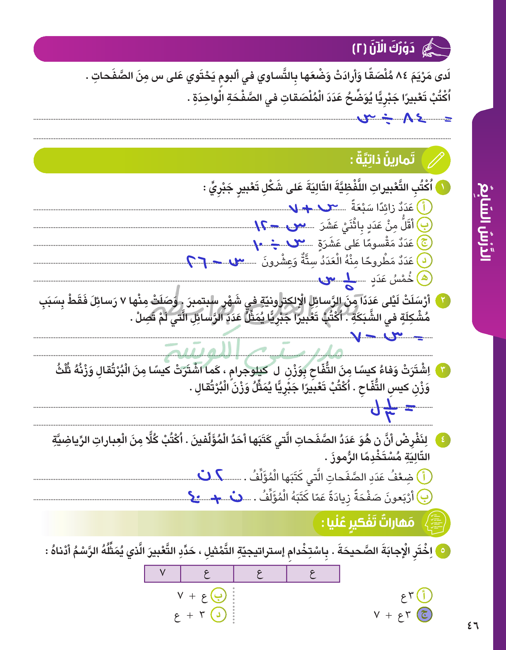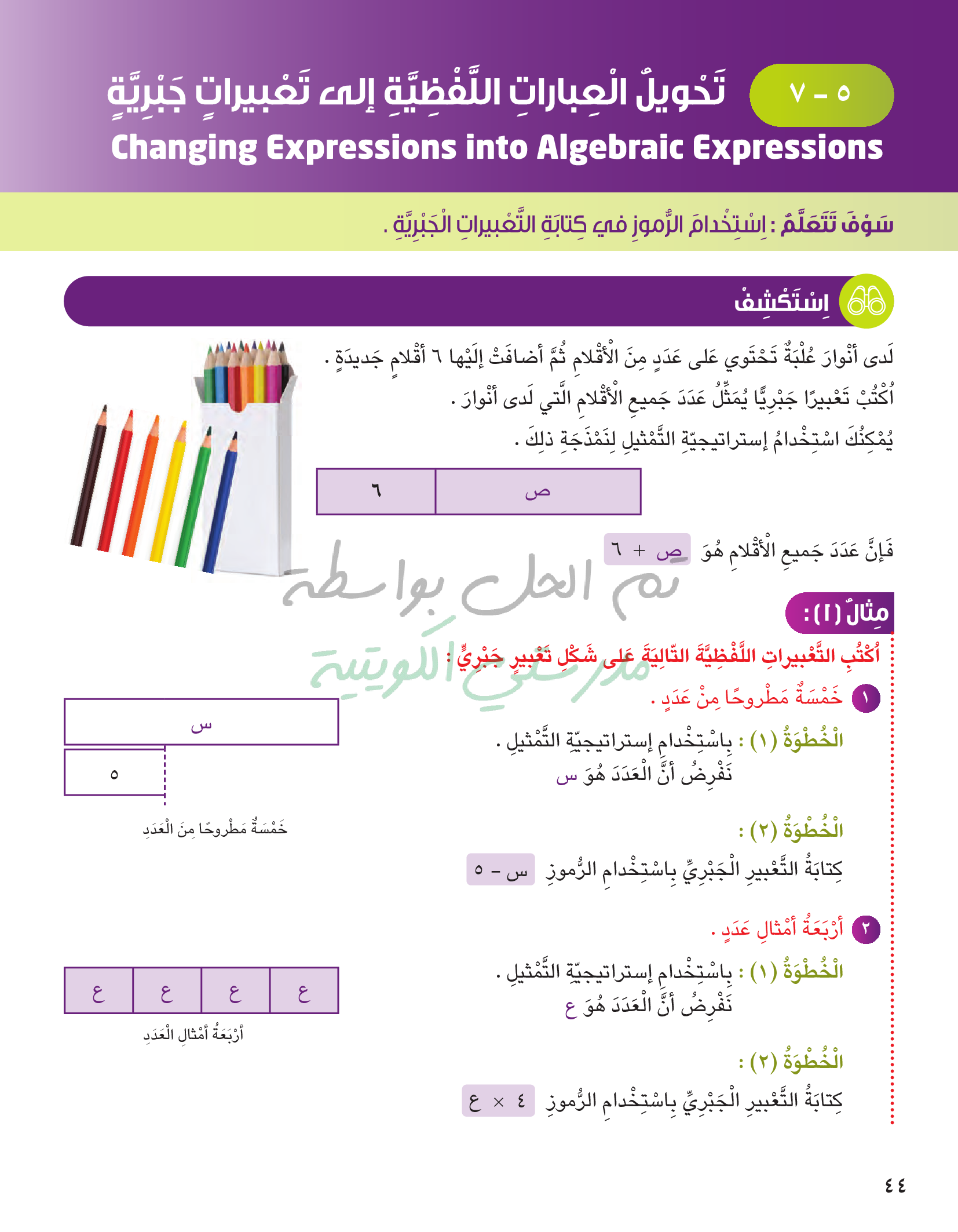 تحويل العبارات اللفظية إلى تعبيرات جبرية