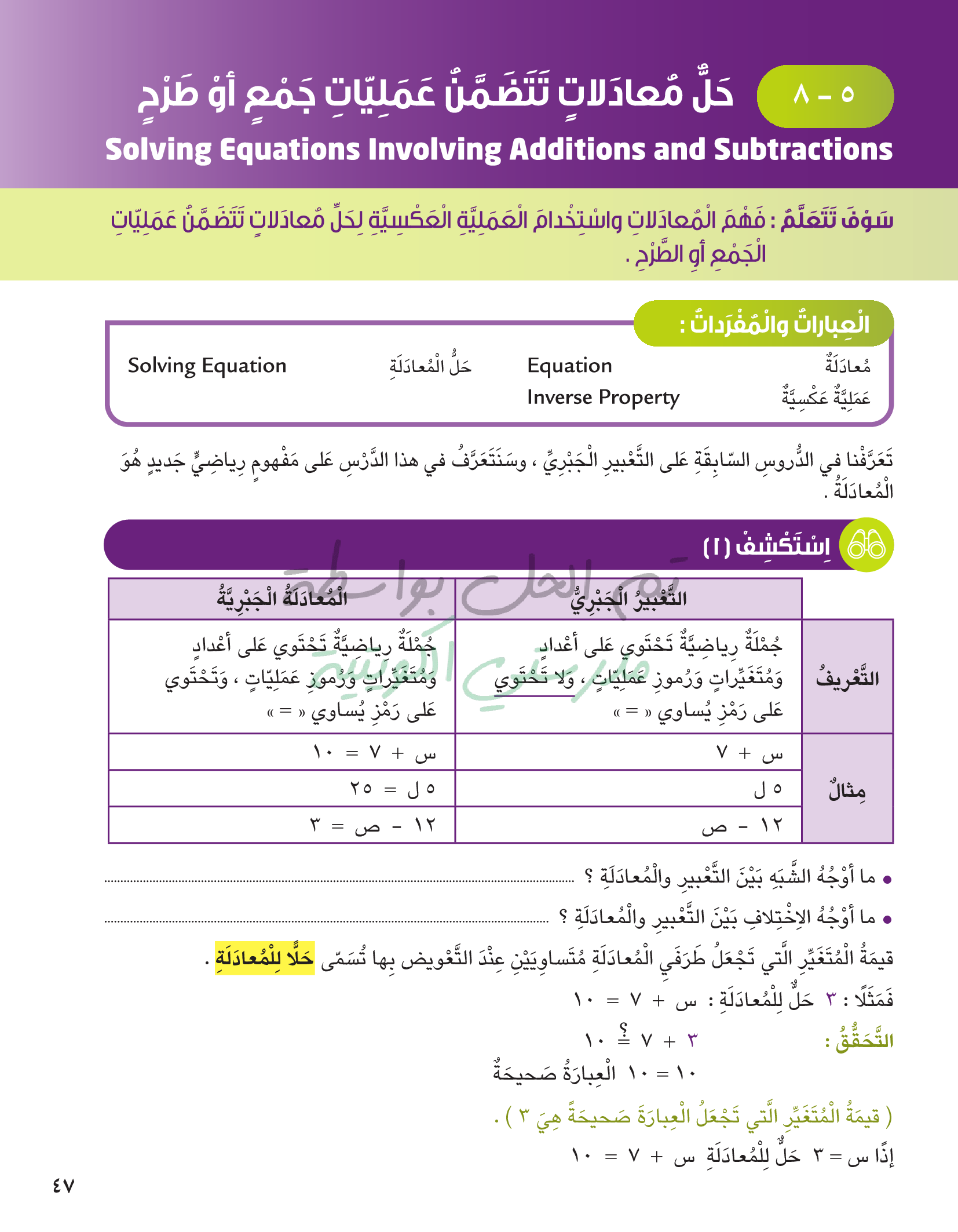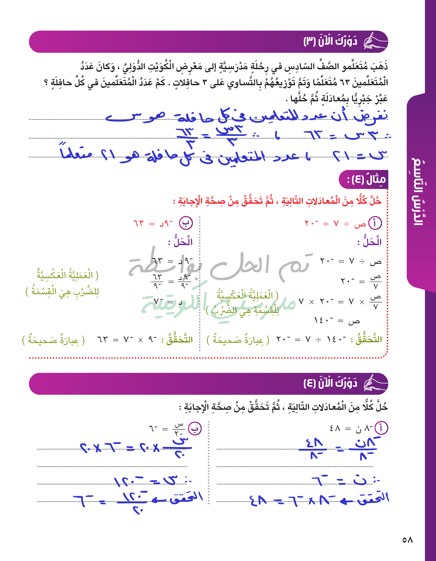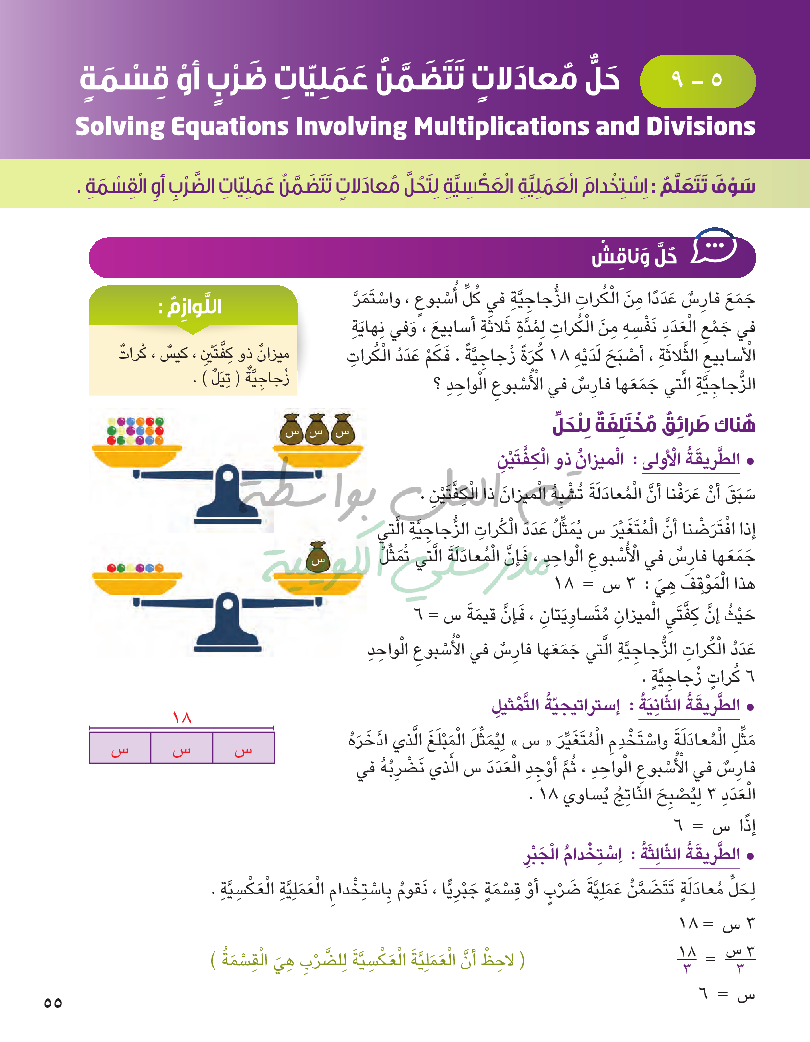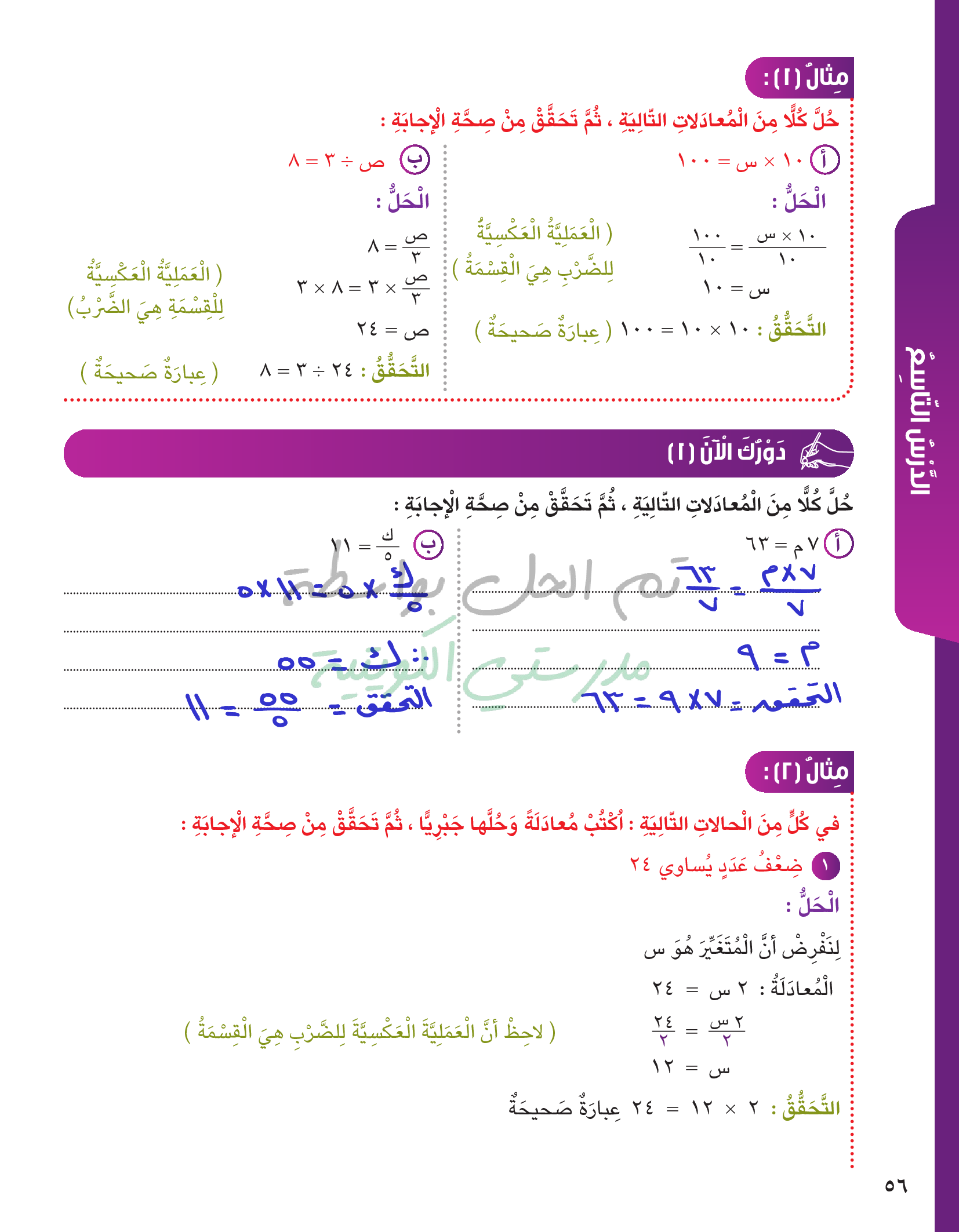 حل معادلات تتضمن عمليات ضرب أو قسمة