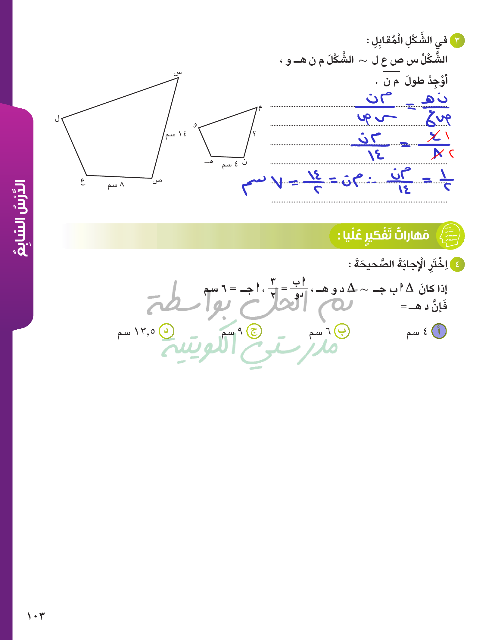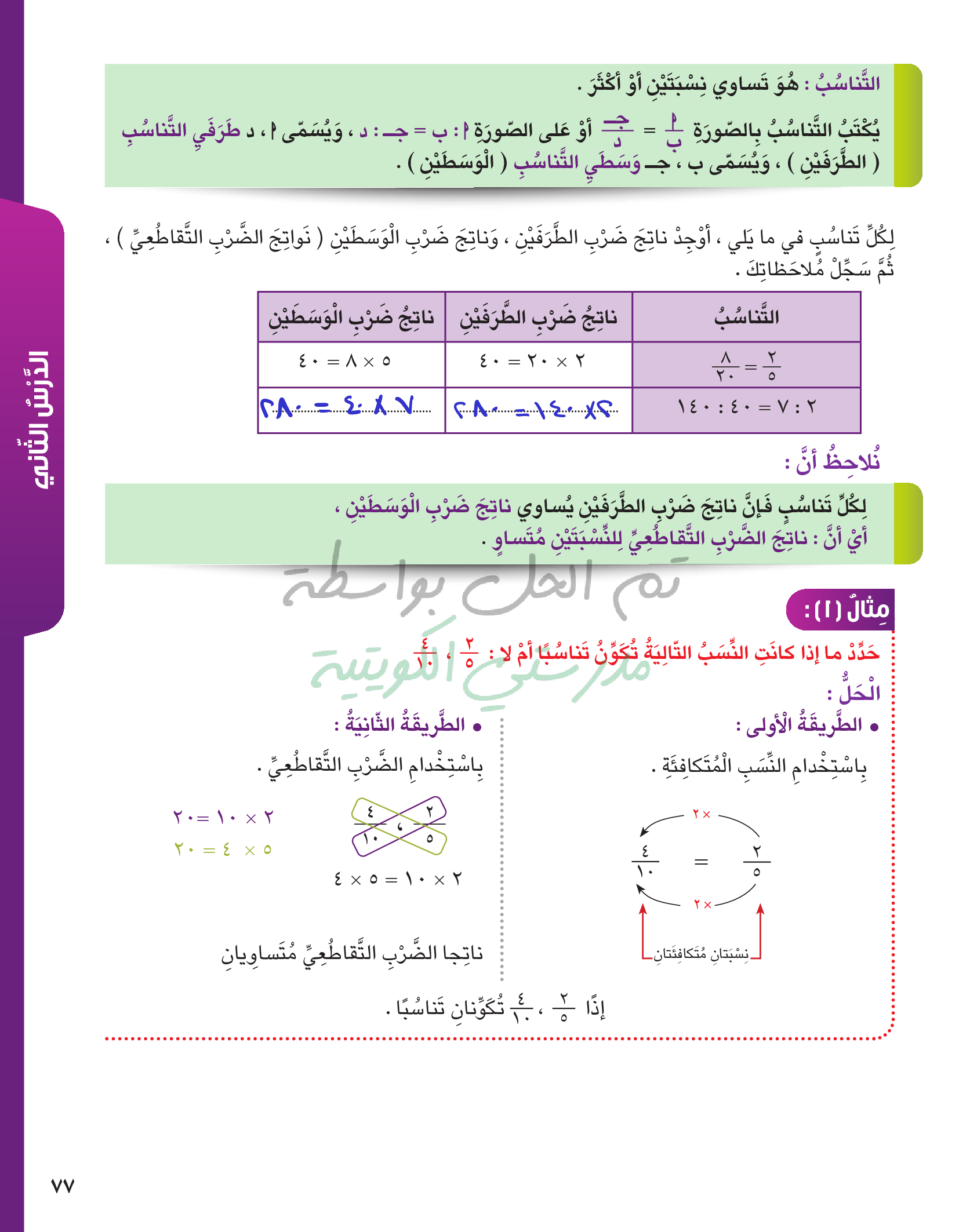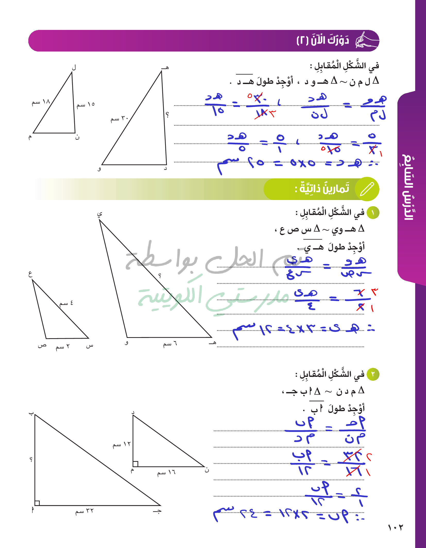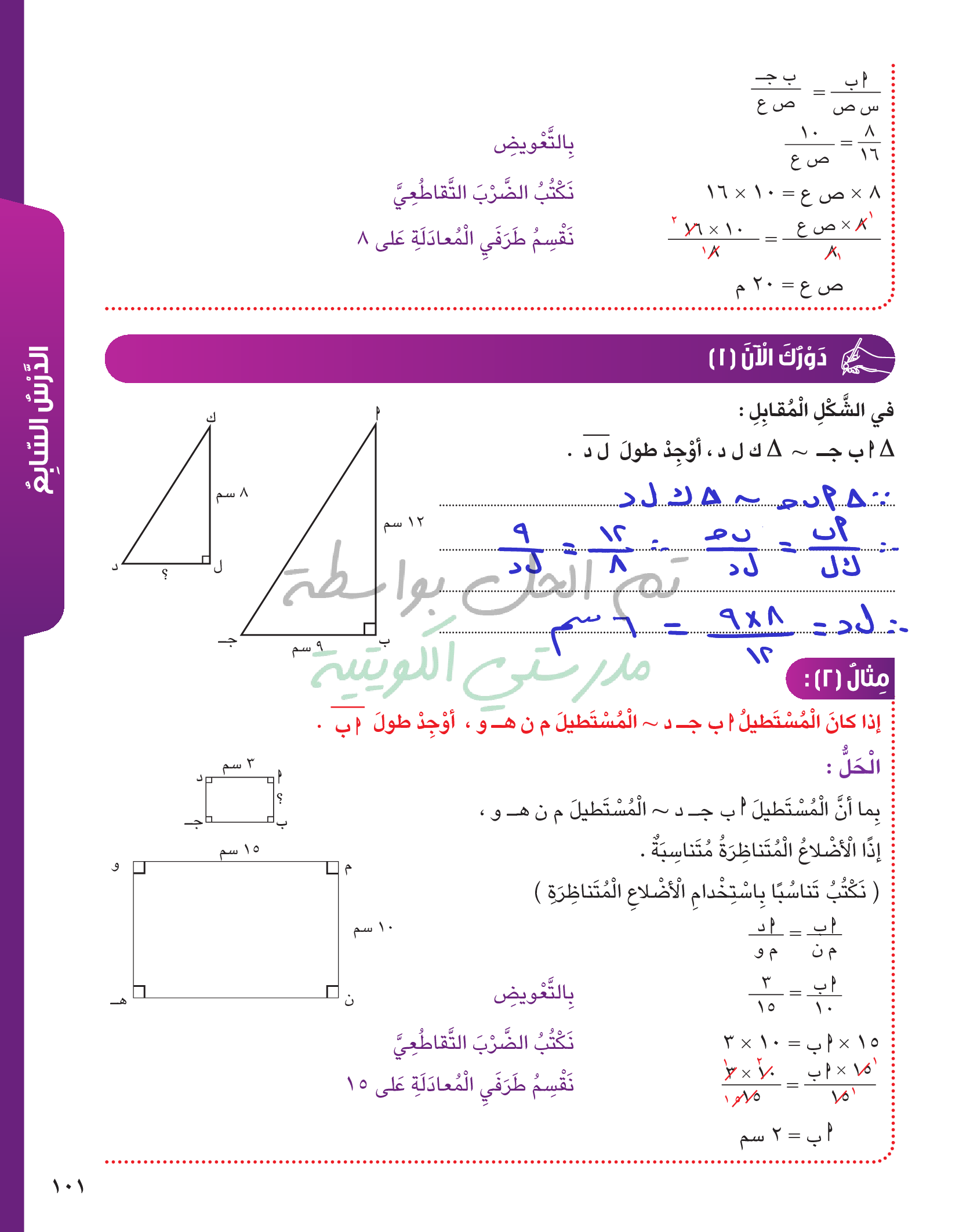 حل مسائل تتضمن تناسبا (الأشكال الهندسية المتشابهة)