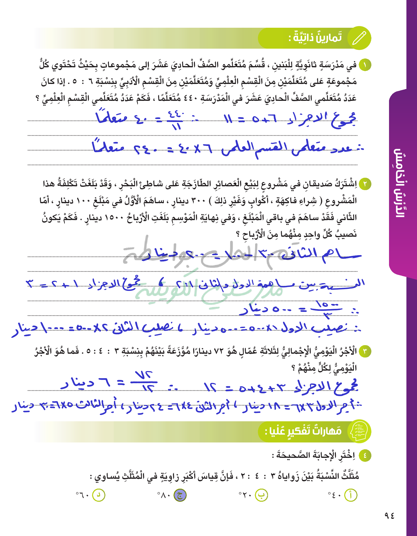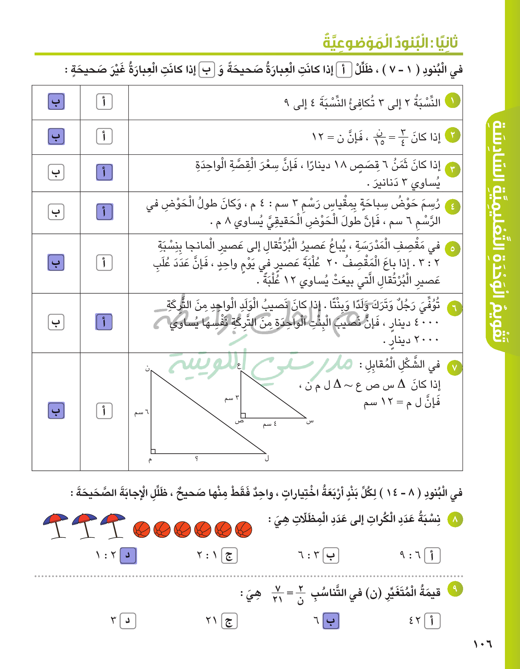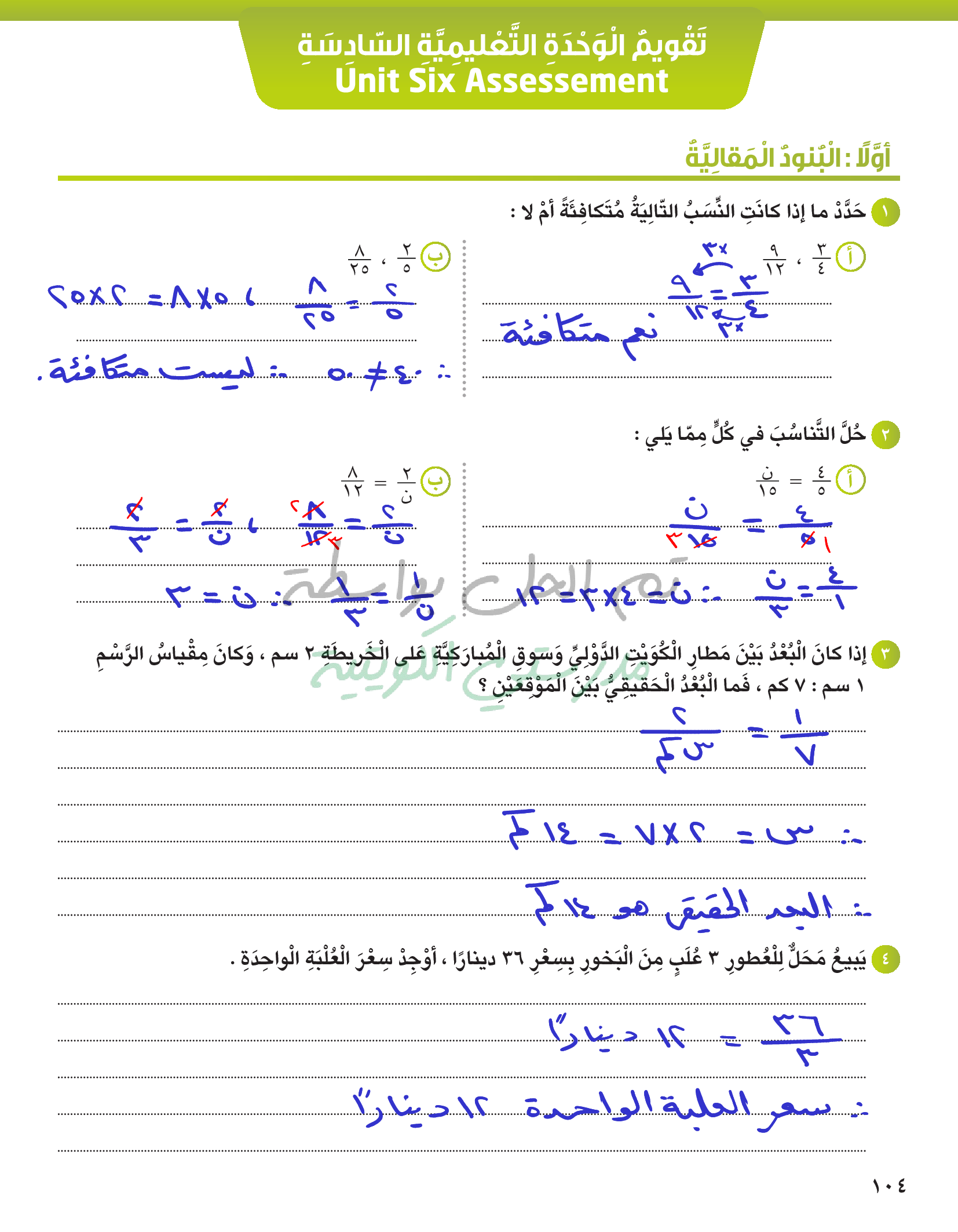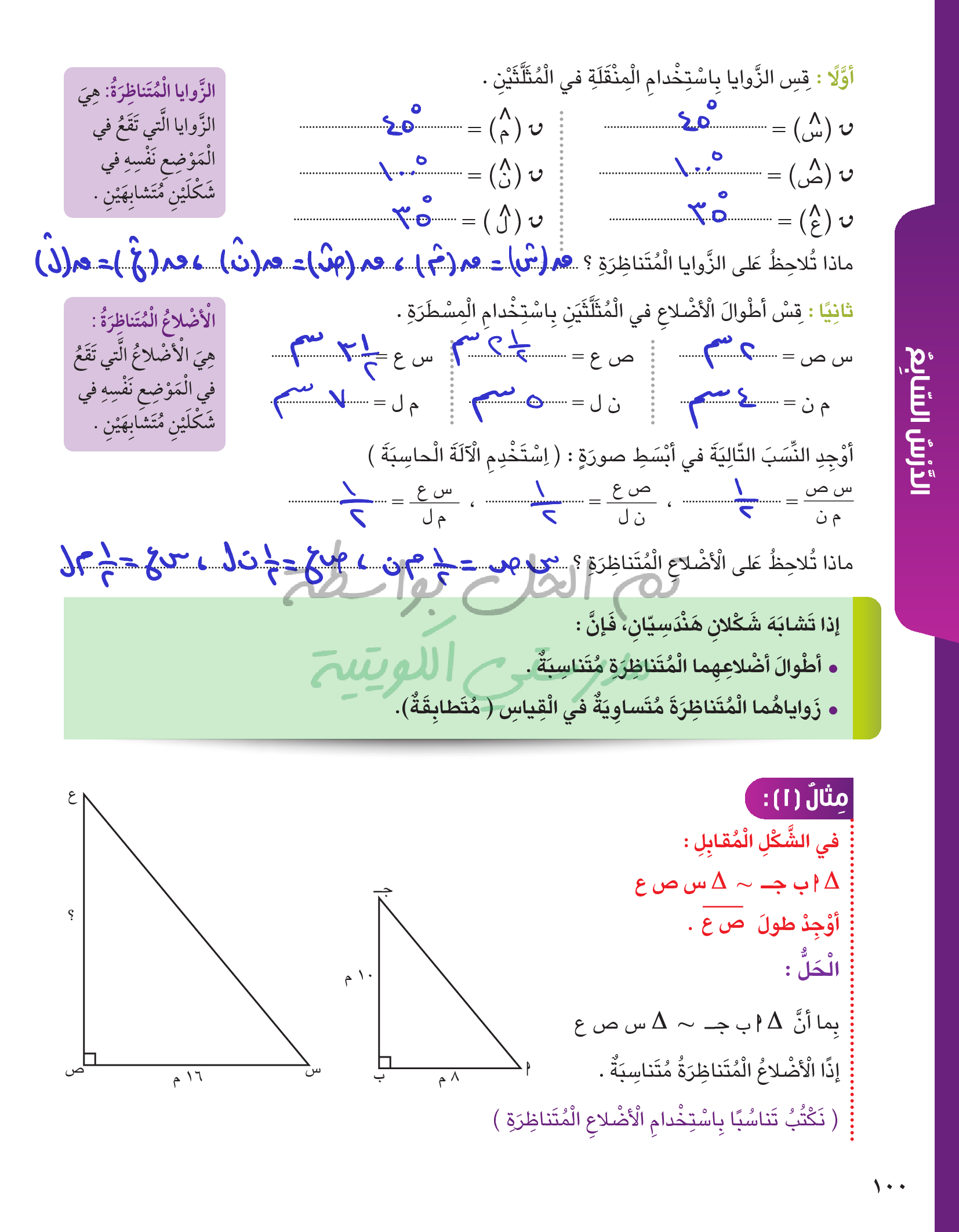 حل مسائل تتضمن تناسبا (الأشكال الهندسية المتشابهة)