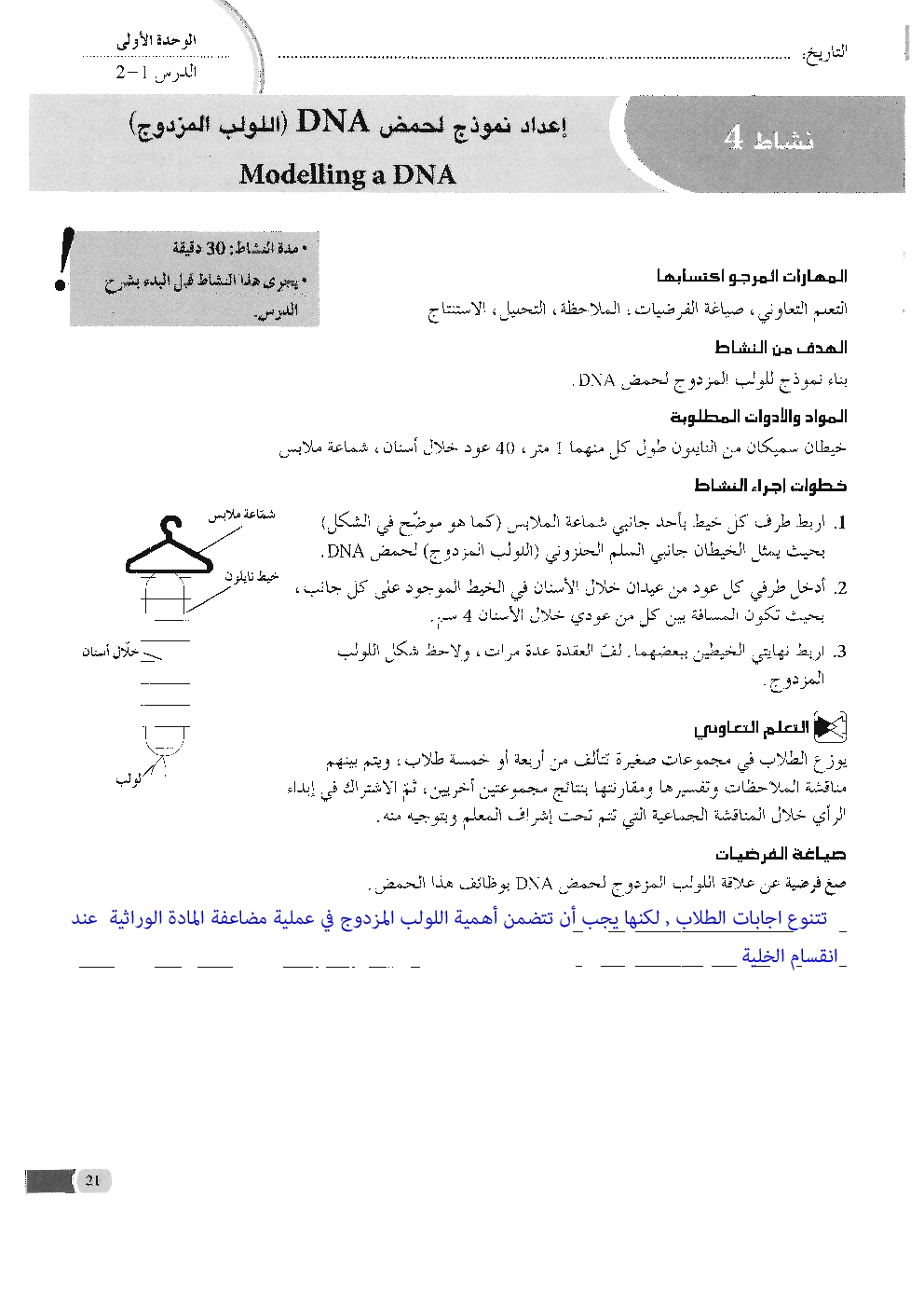 اعداد نموذج لحمض DNA (اللولب المزدوج)