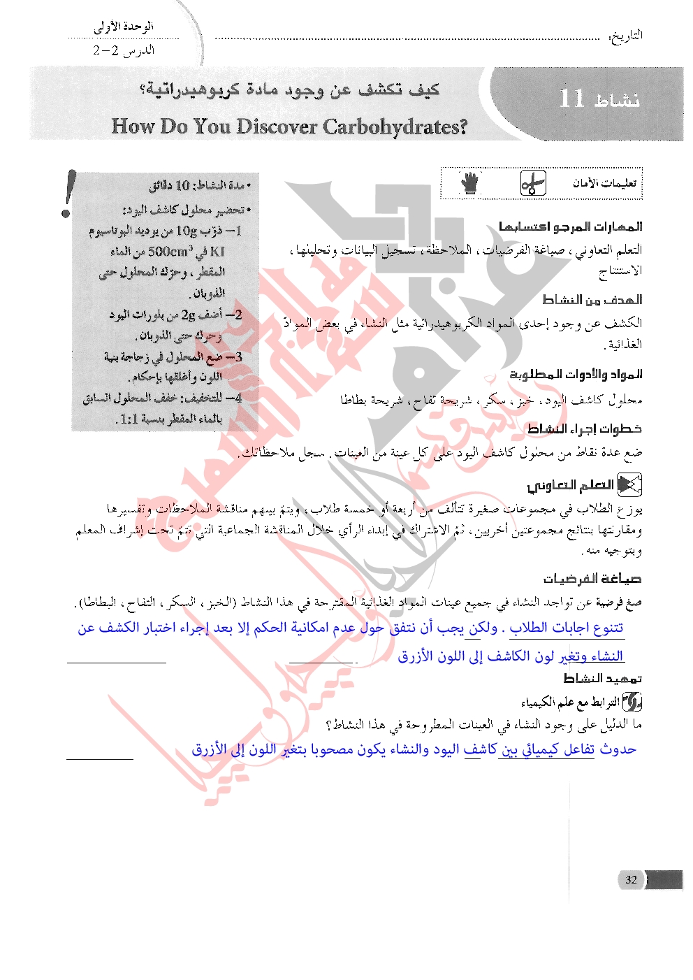 كيف تكشف عن وجود مادة كربوهيداتية؟