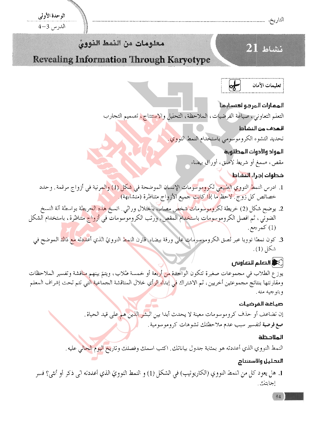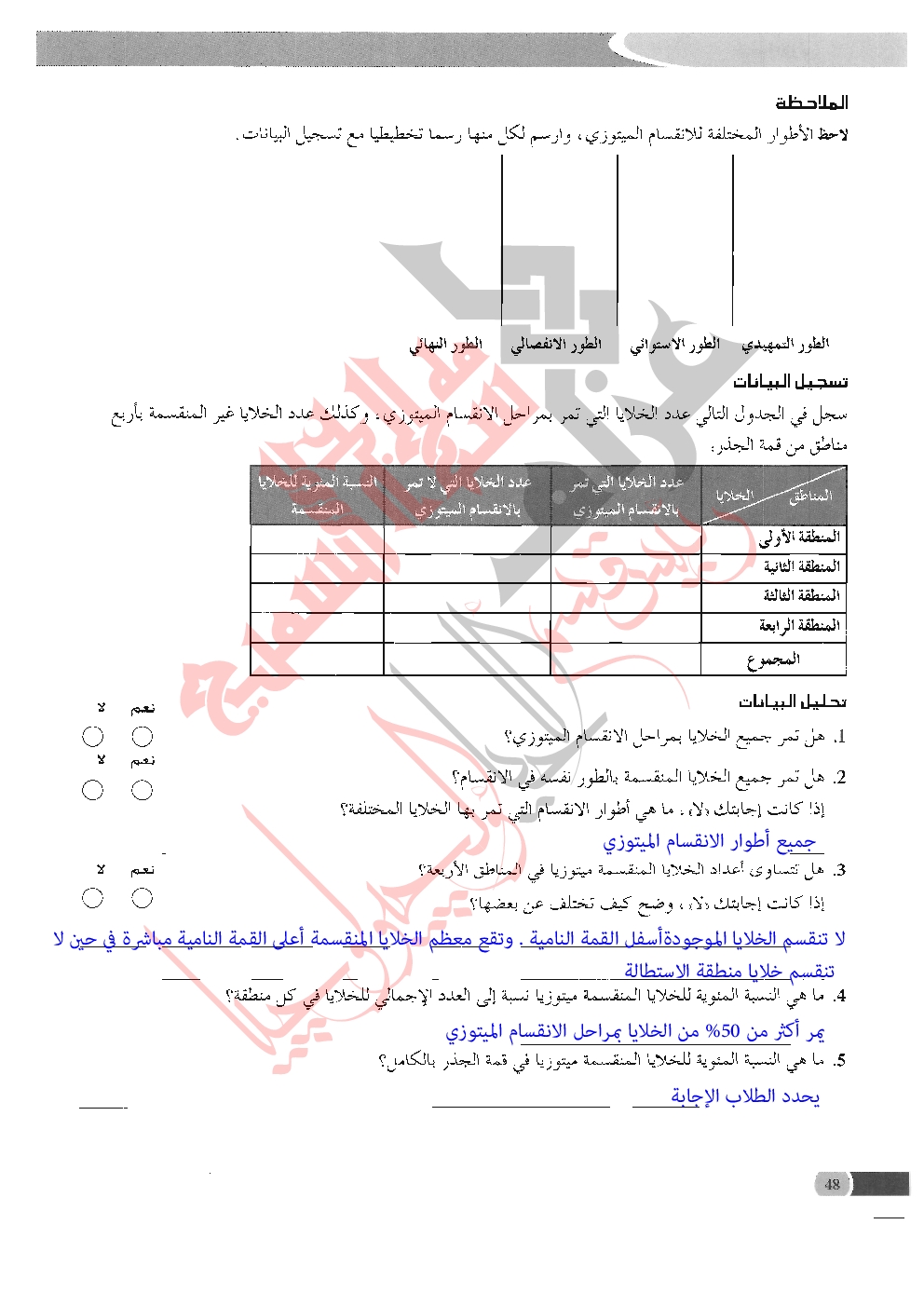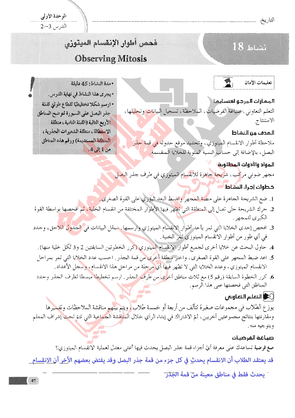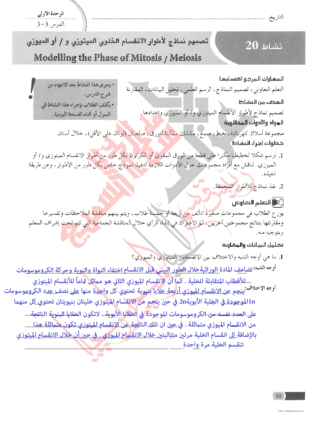تصميم نماذج لأطوار الانقسام الخلوي الميتوزي م/أو الميوزي