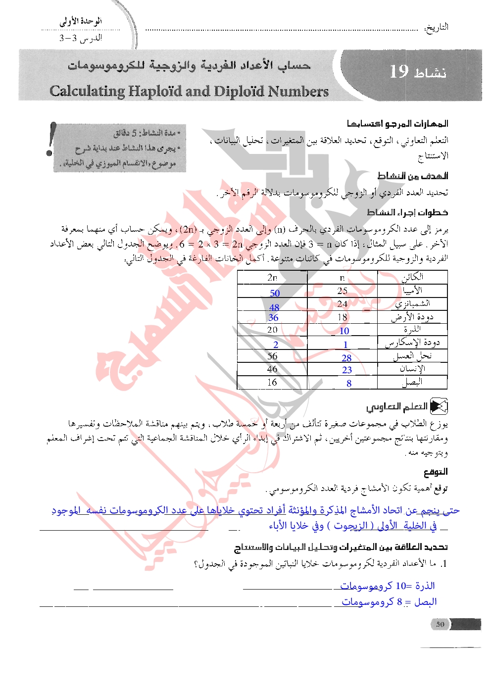 حساب الأعداد الفردية والزوجية للكروموسومات