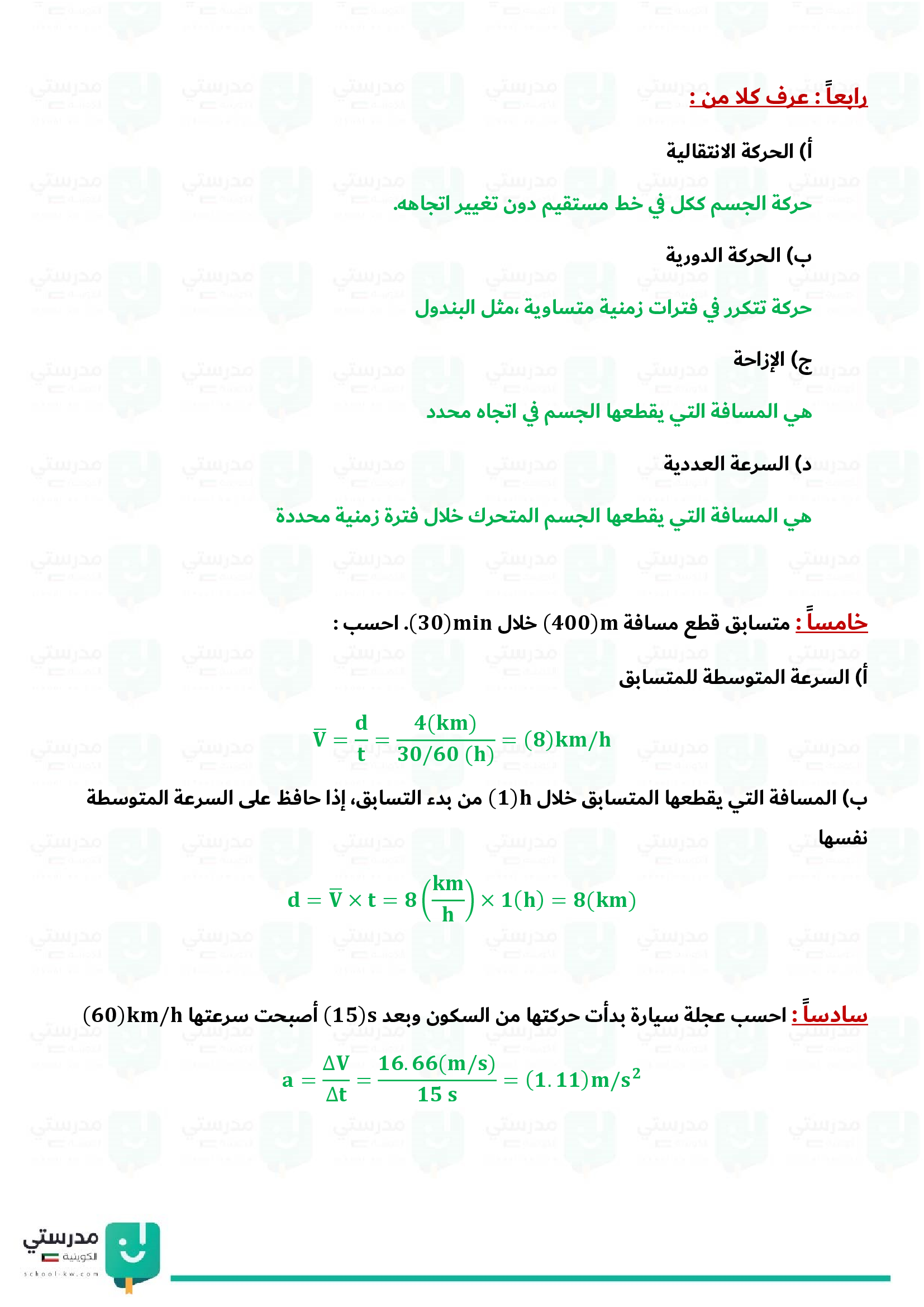 مفهوم الحركة والكميّات الفيزيائية اللازمة لوصفها