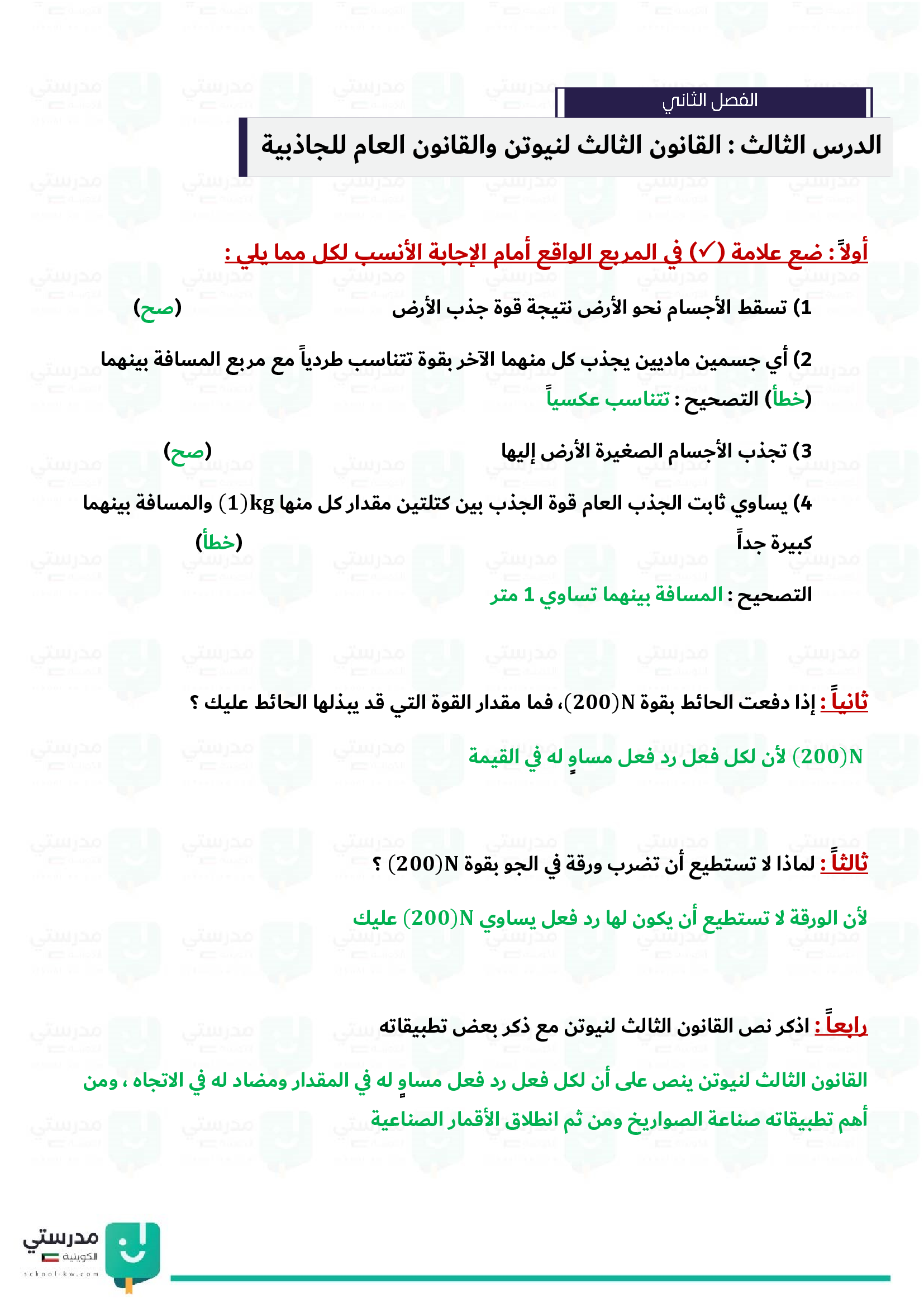 القانون الثالث لنيوتن والقانون العامّ للجاذبية