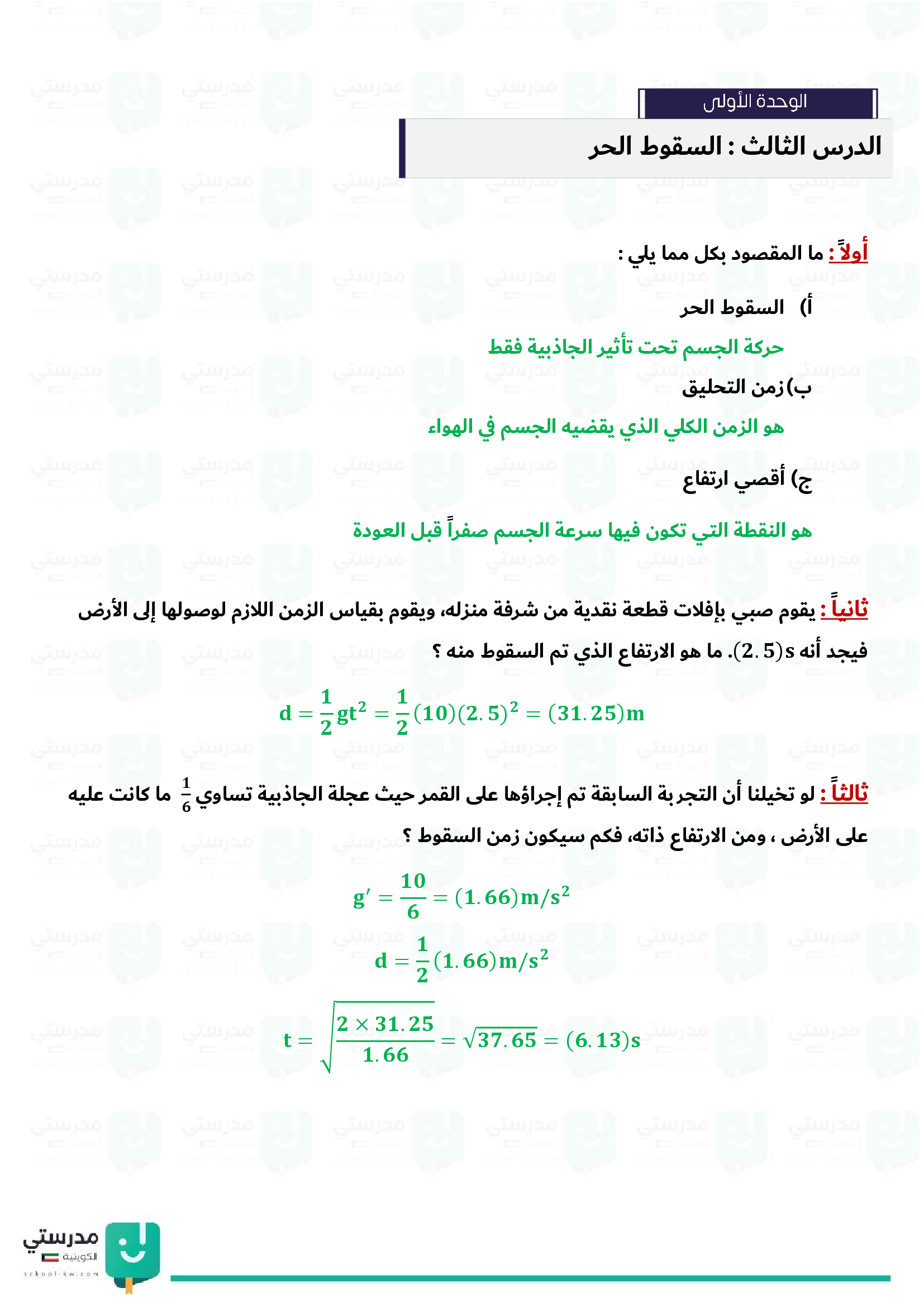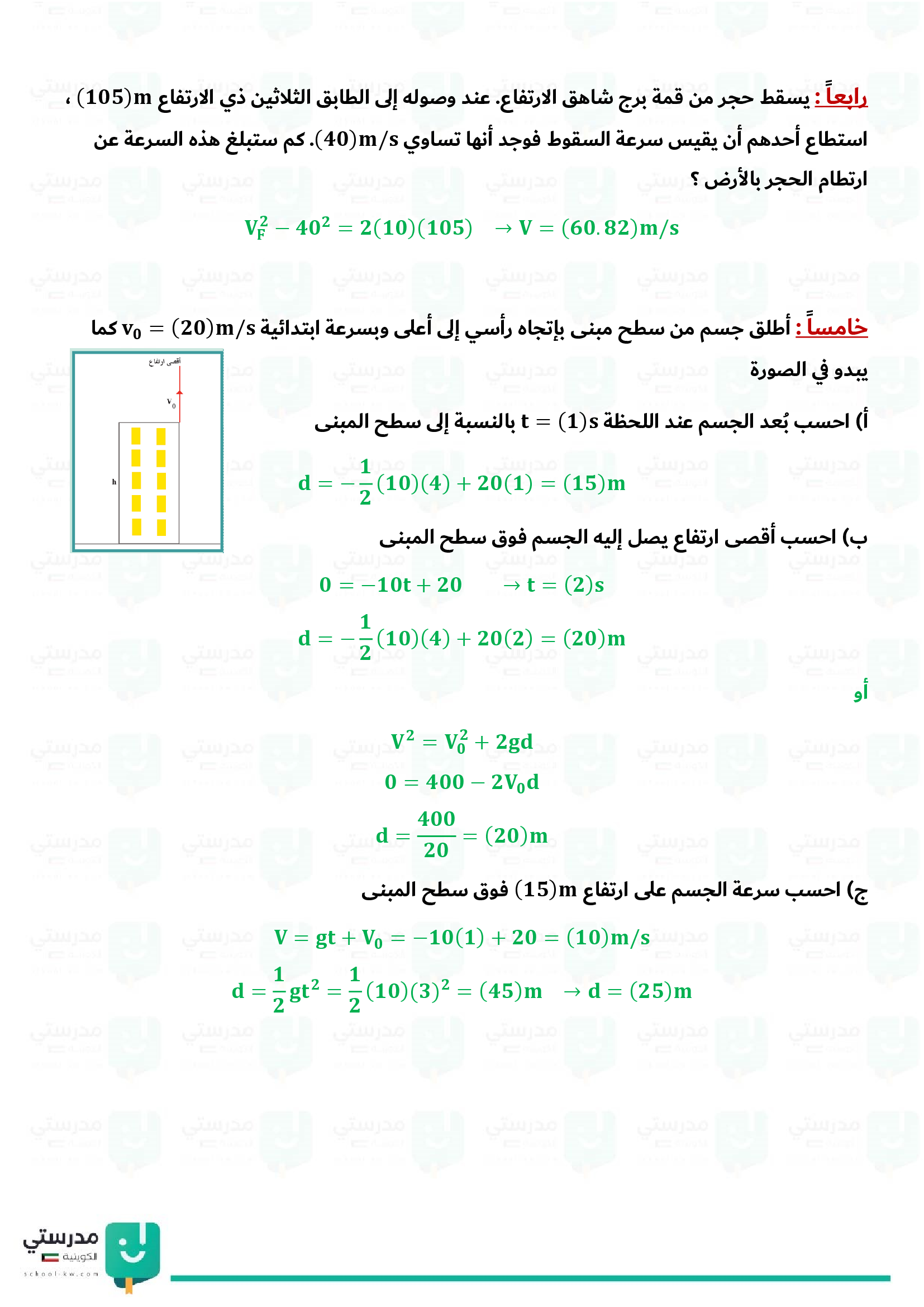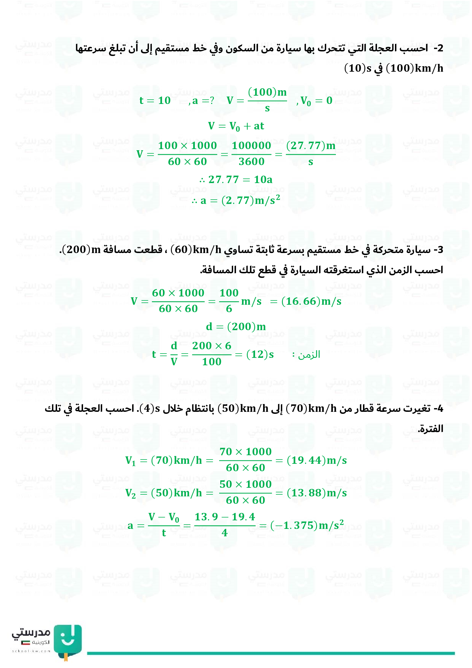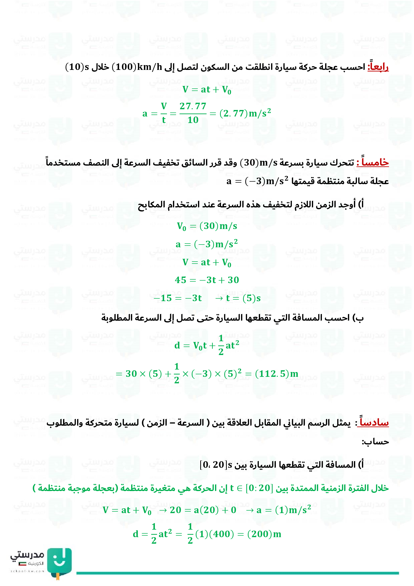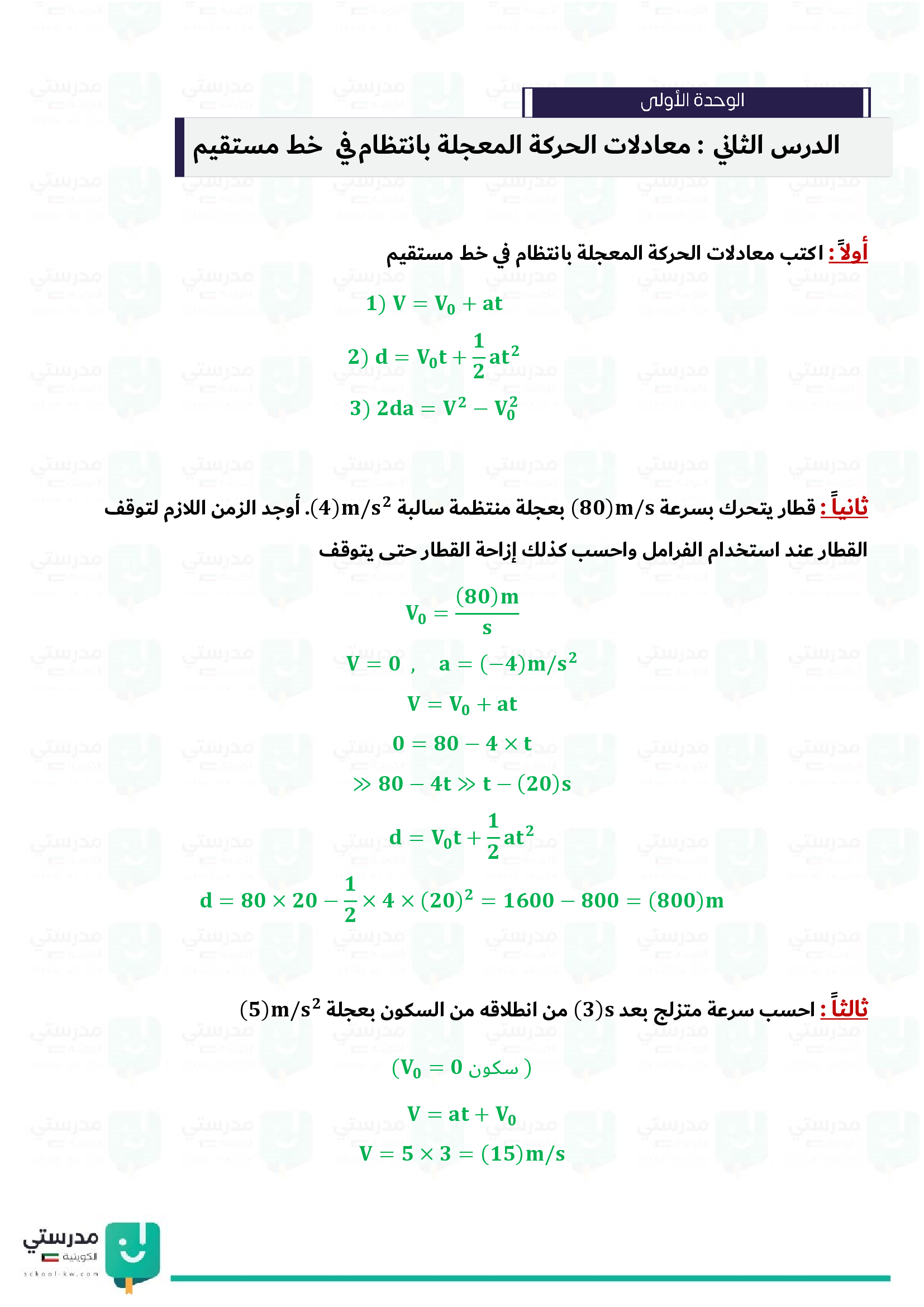 معادلات الحركة المعجلة بانتظام في خطّ مستقيم