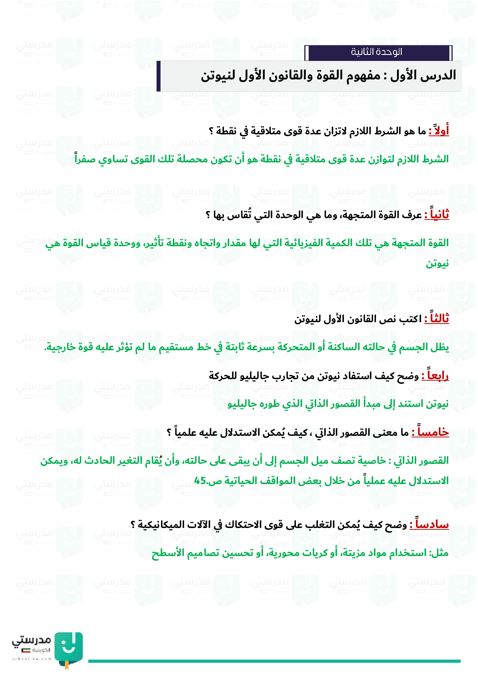 مفهوم القوّة والقانون الأوّل لنيوتن
