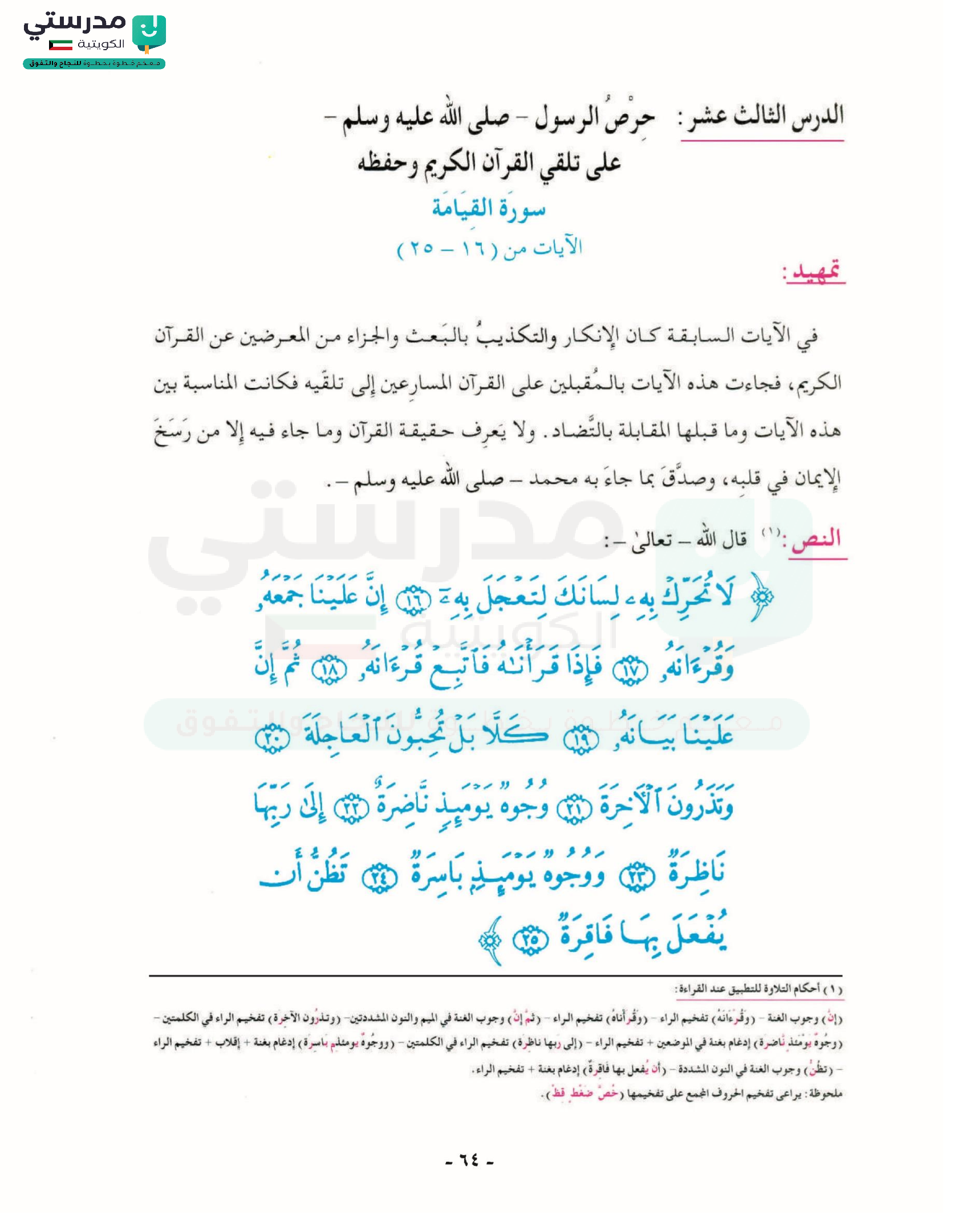 حرص الرسول ص على تلقي القرأن الكريم وحفظه