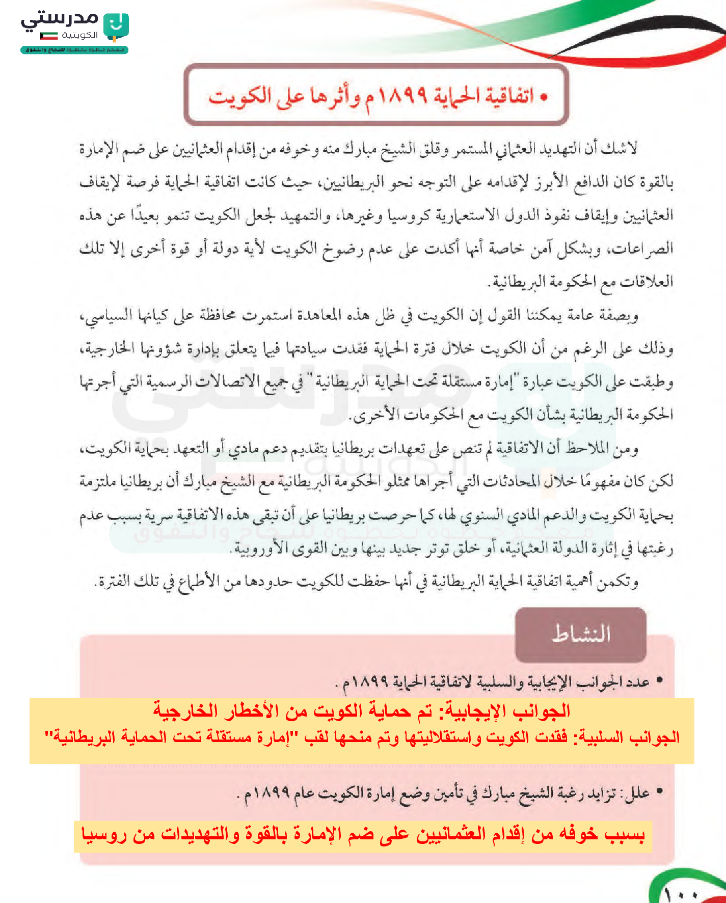 اتفاقية الحماية ١٨٩٩ م وأثرها على الكويت