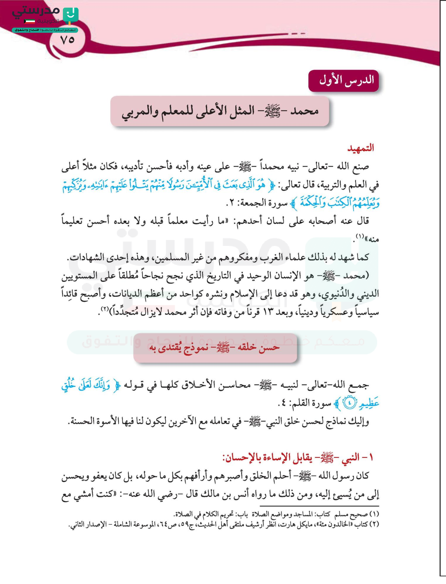 محمد صلى الله عليه و سلم المثل الأعلى للمعلم والمربي