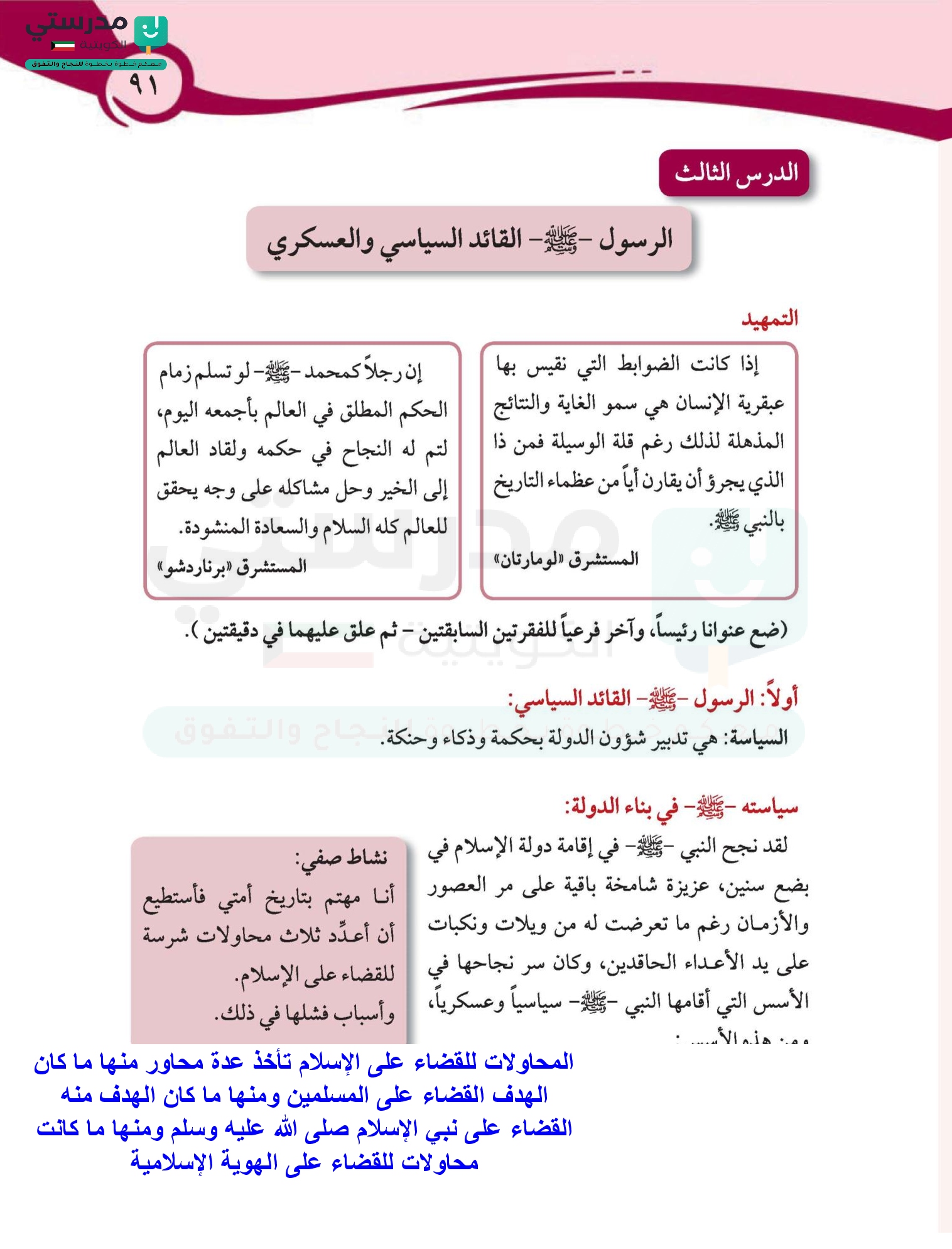 الرسول صلى الله عليه و سلم القائد السياسي والعسكري