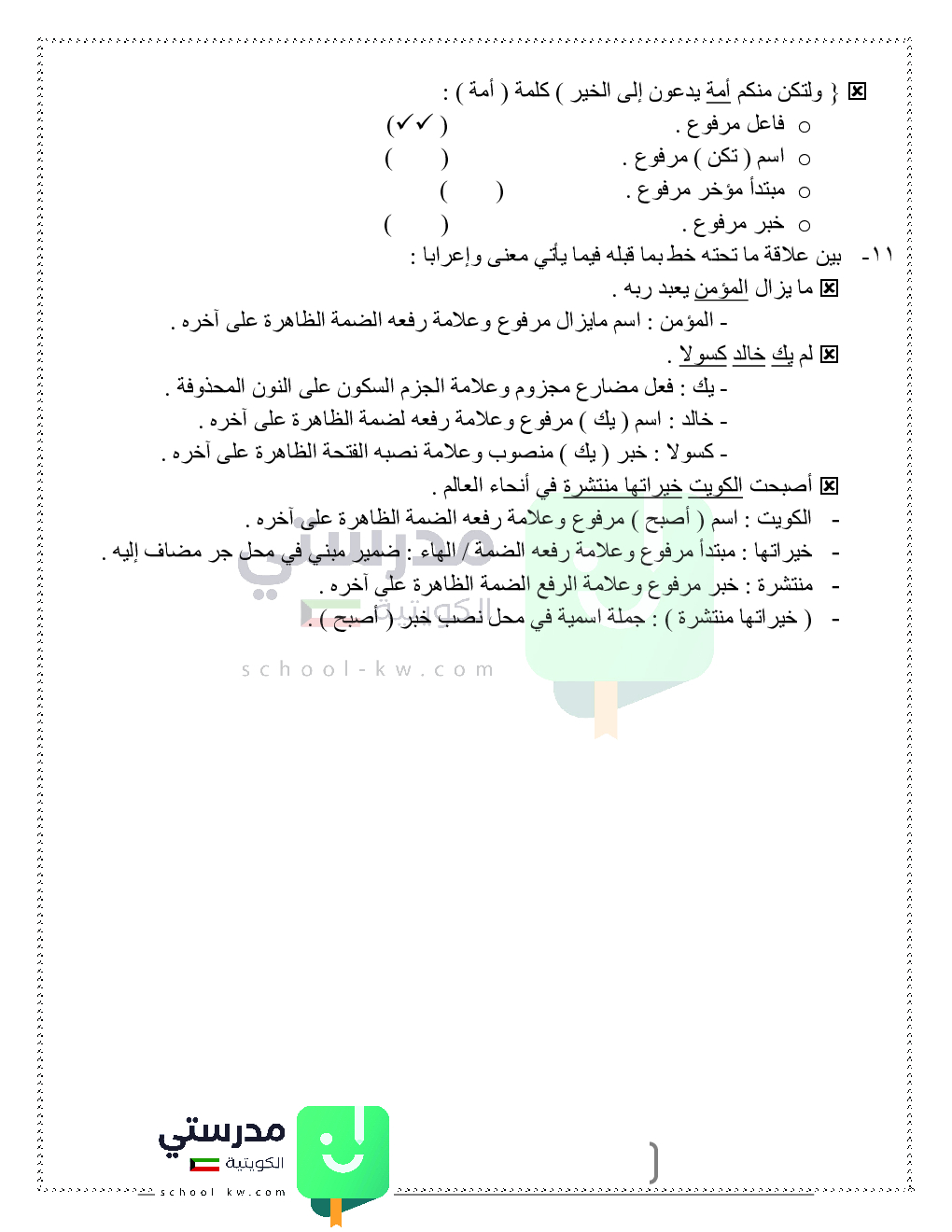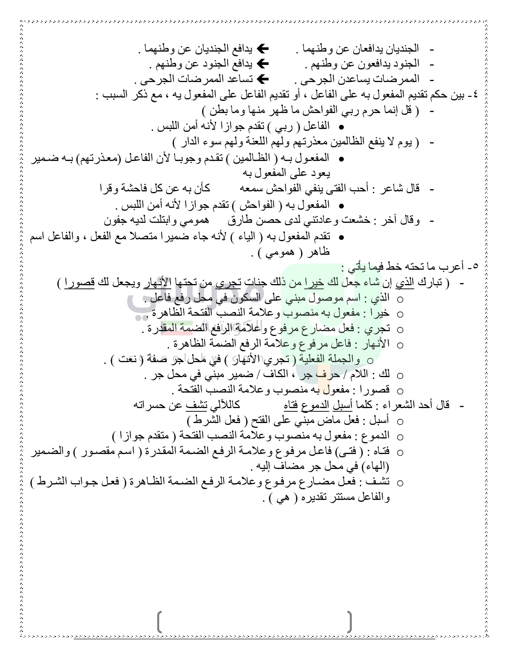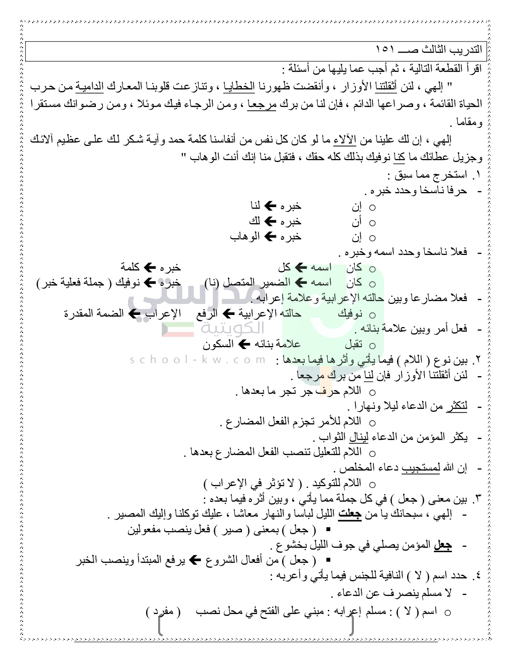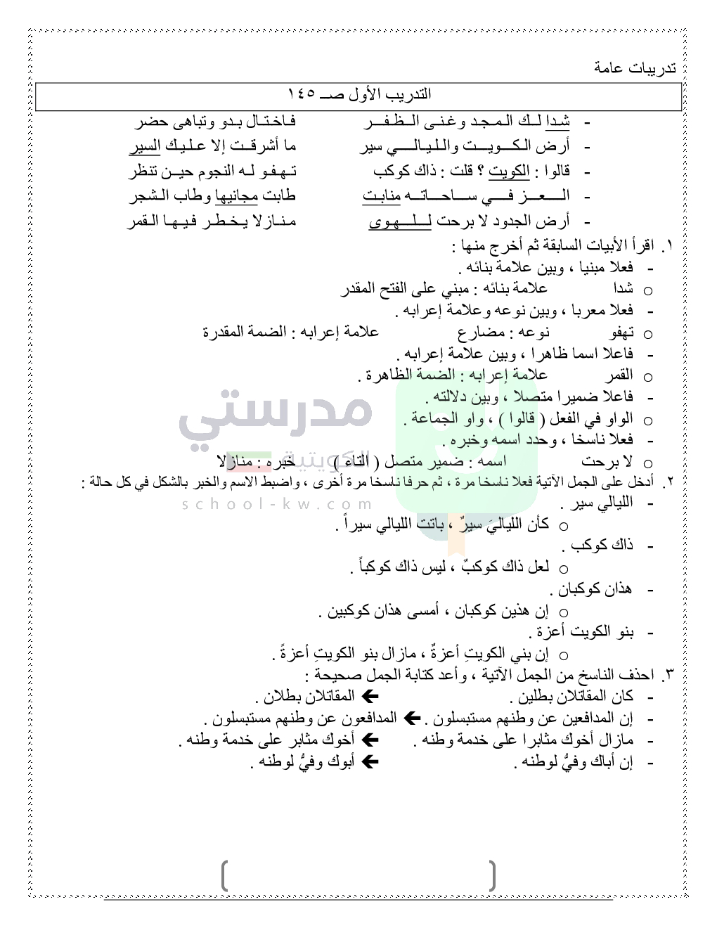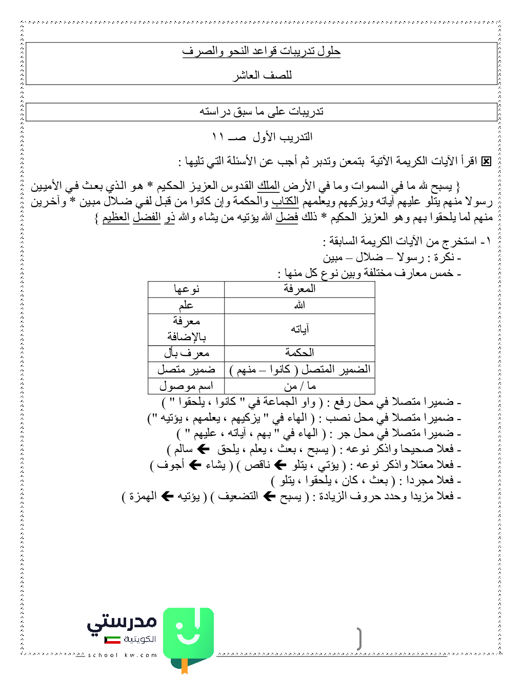 حلول تدريبات قواعد النحو والصرف