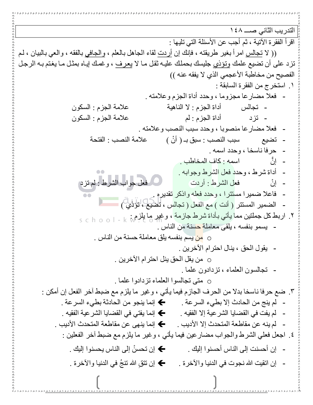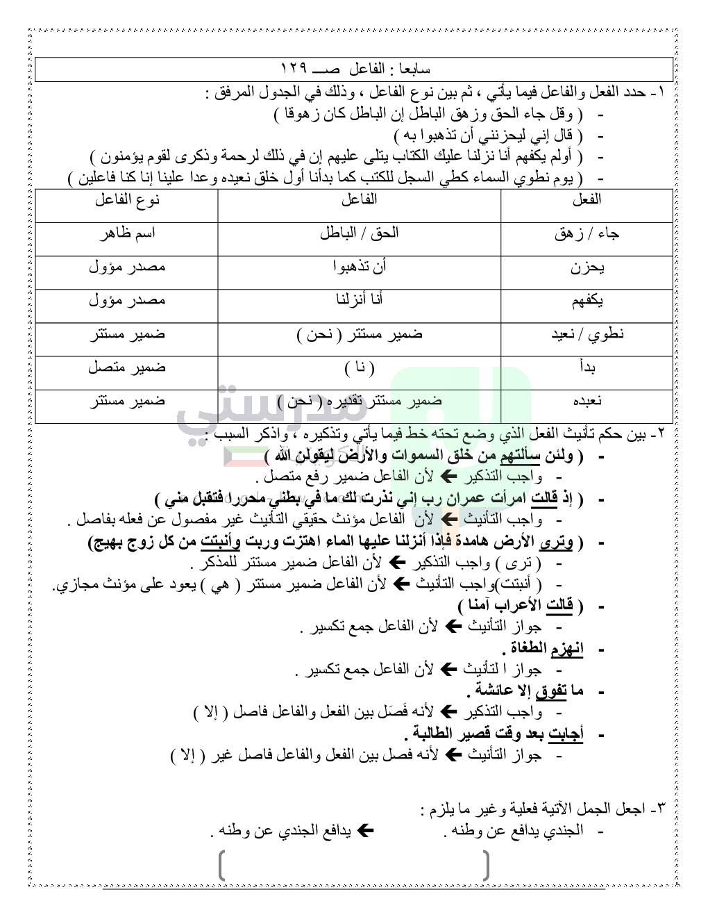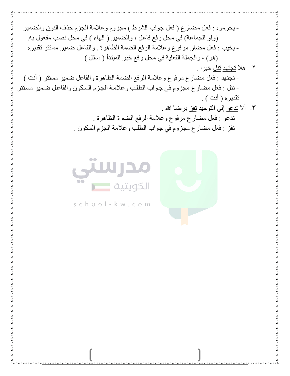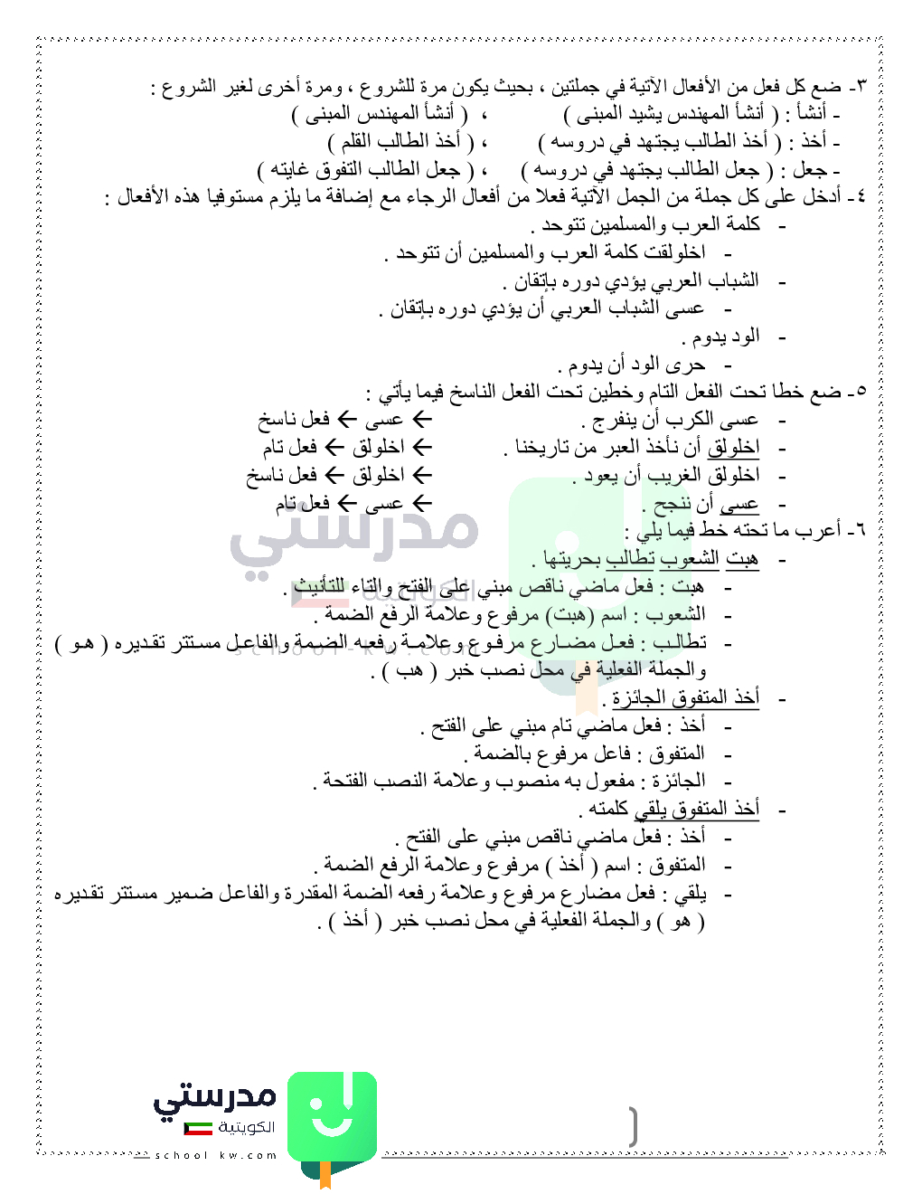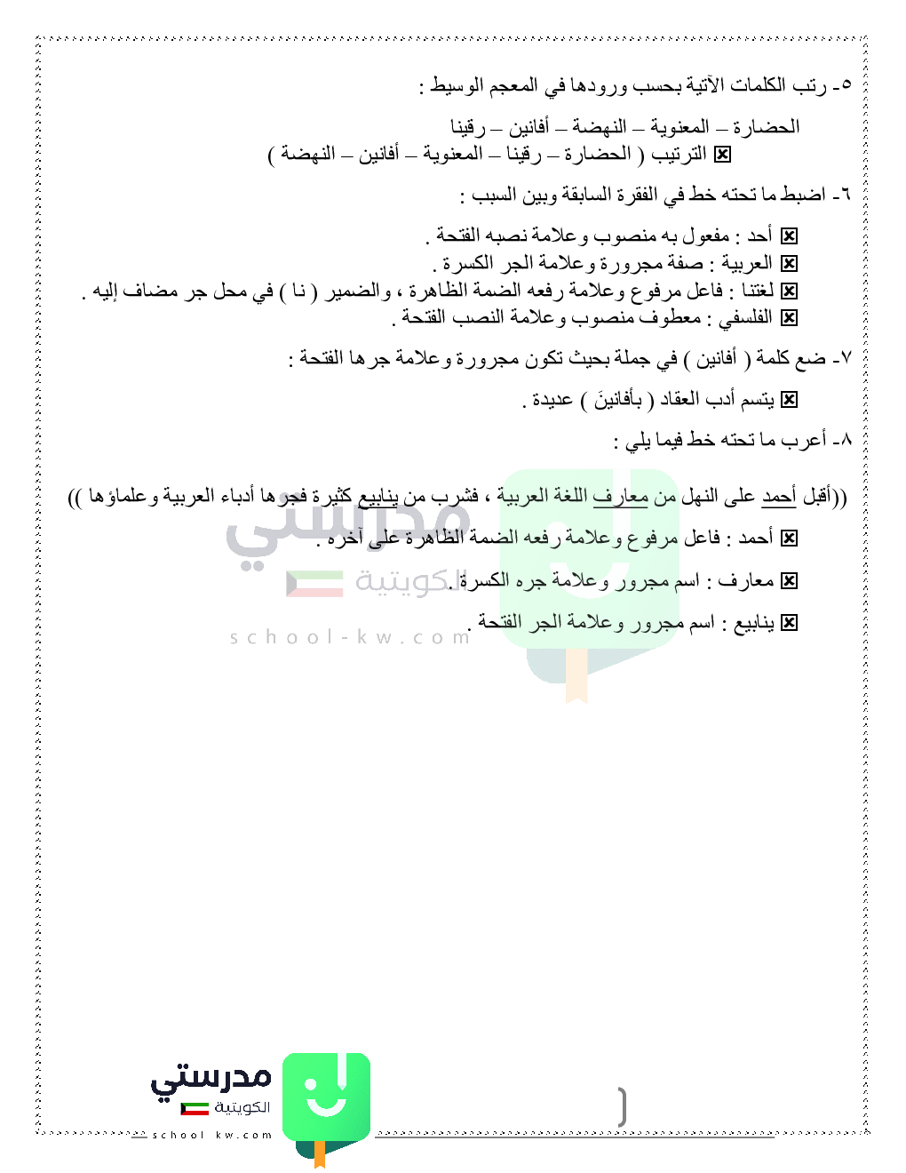 حلول تدريبات قواعد النحو والصرف