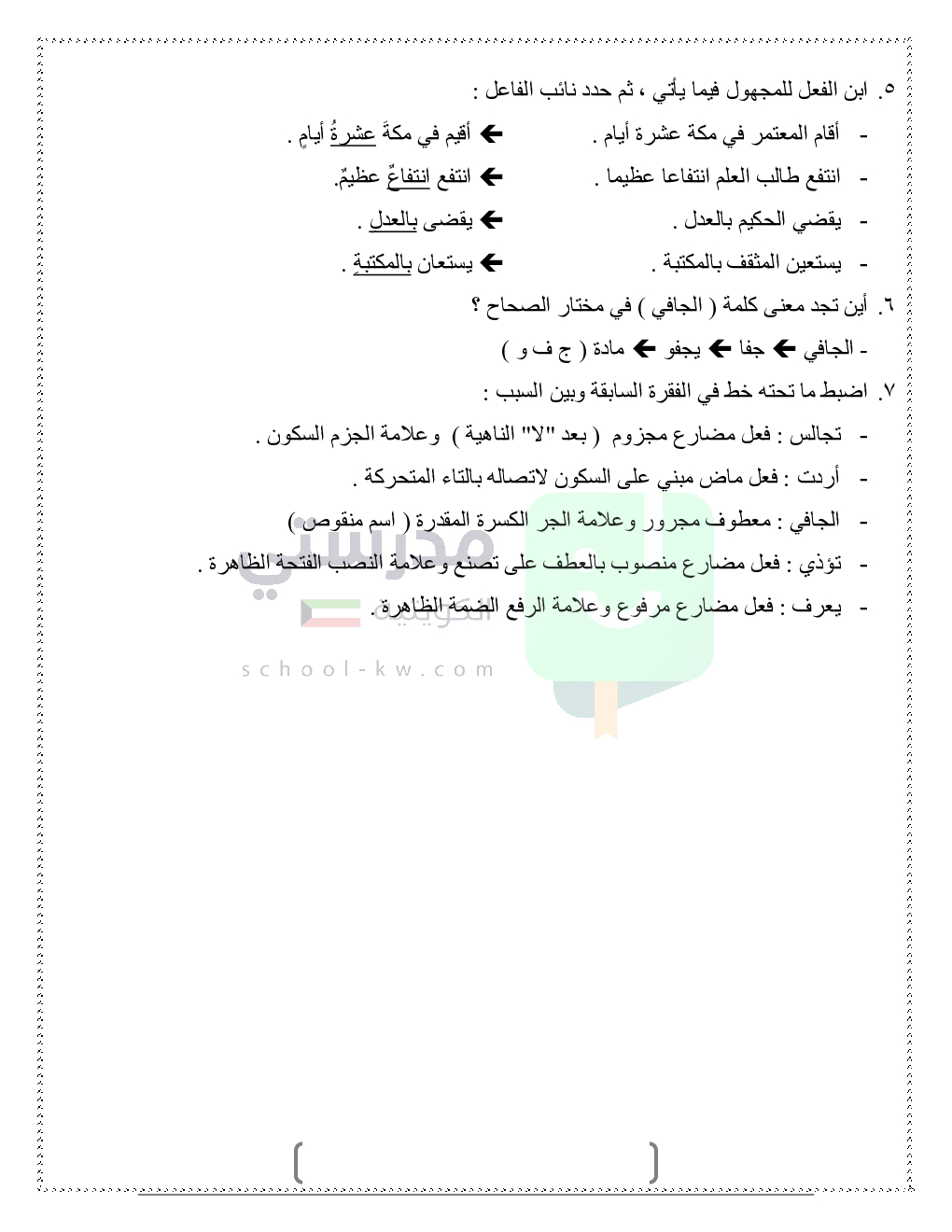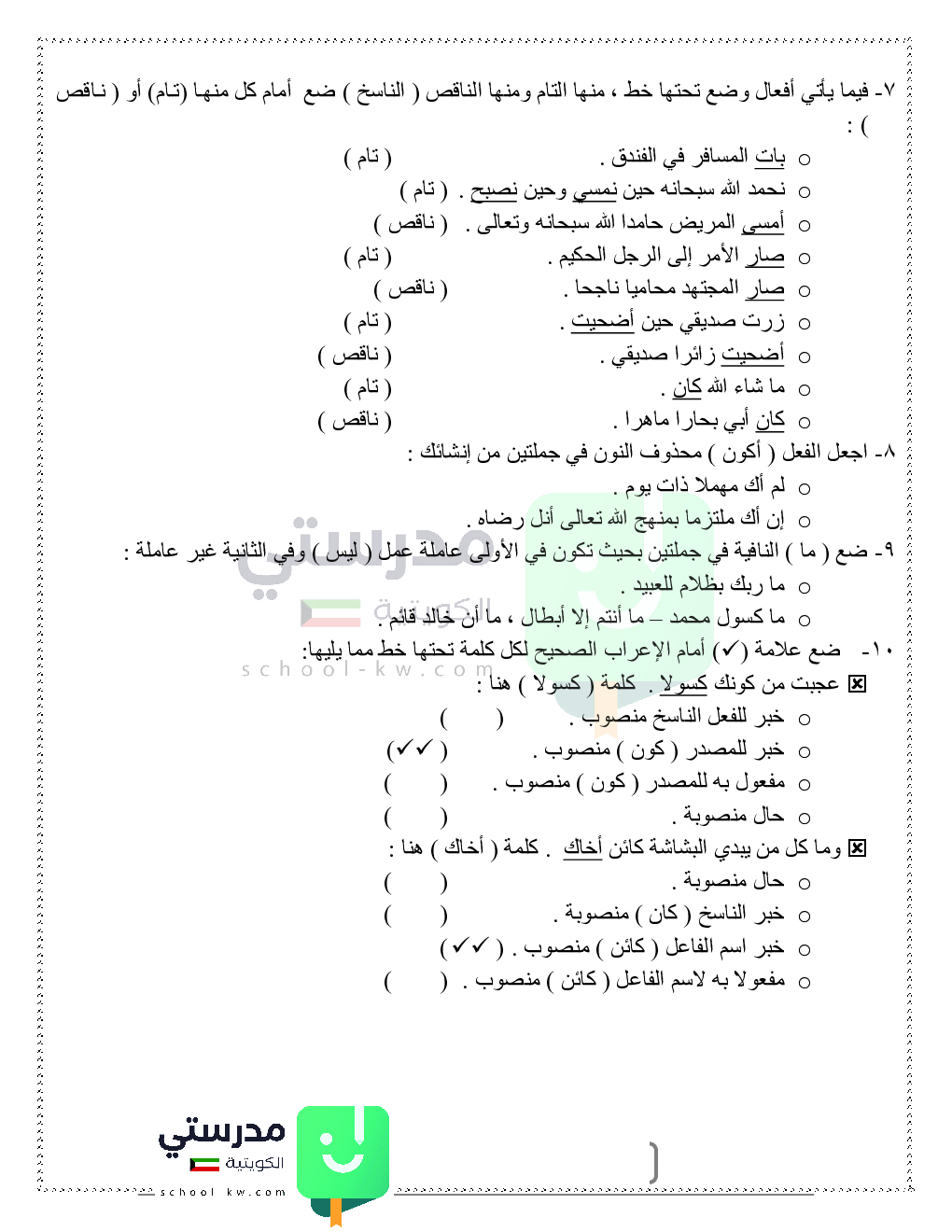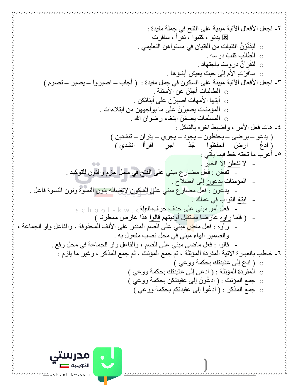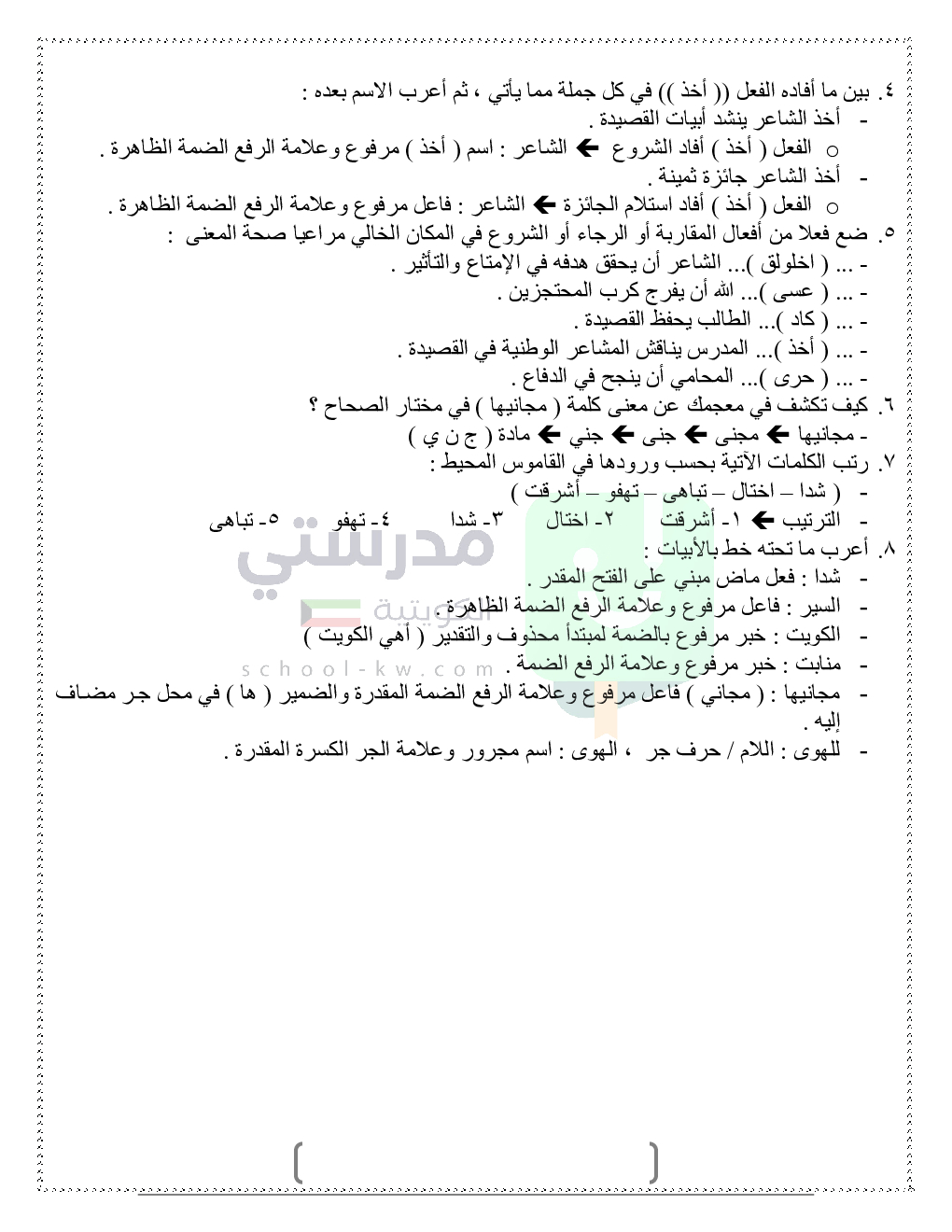 حلول تدريبات قواعد النحو والصرف
