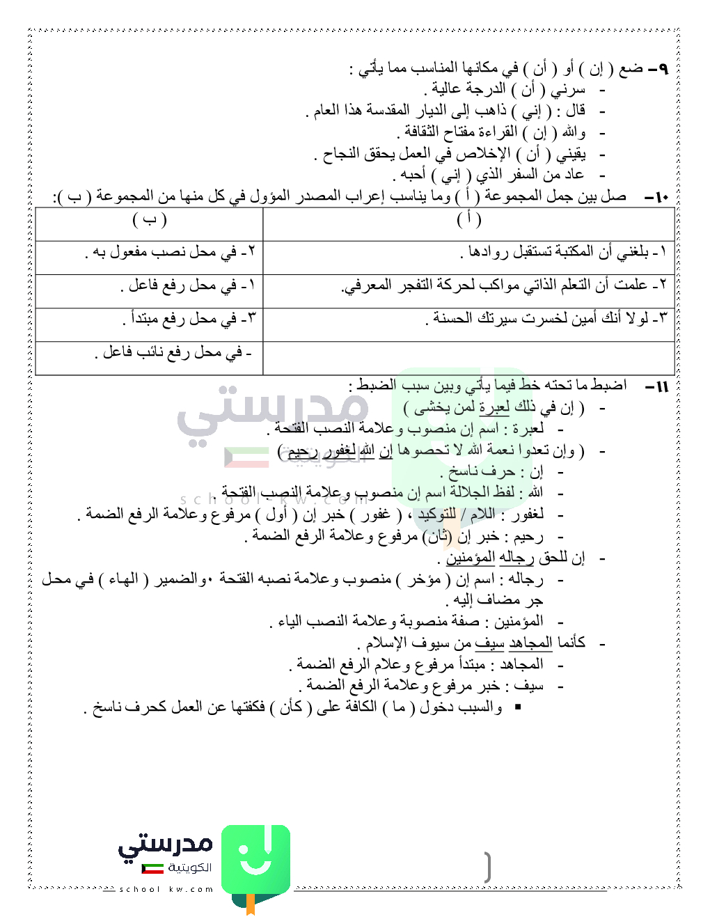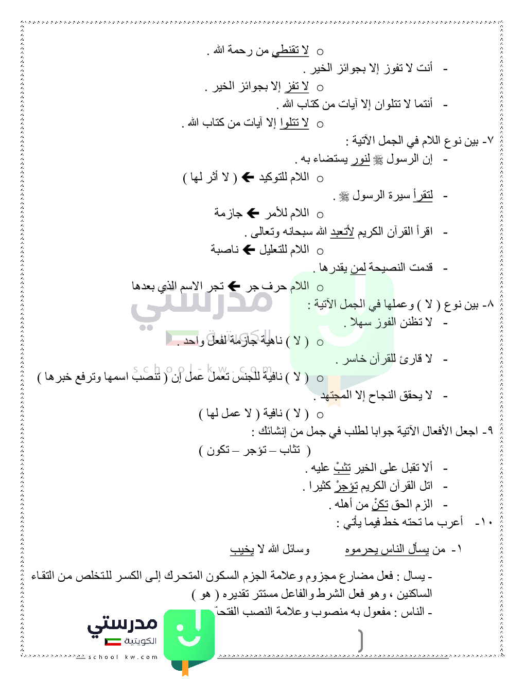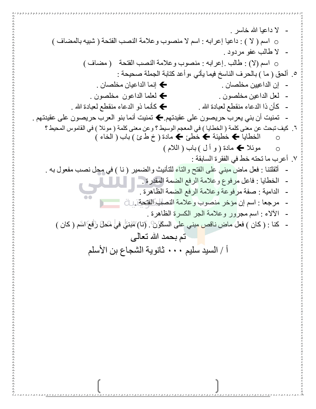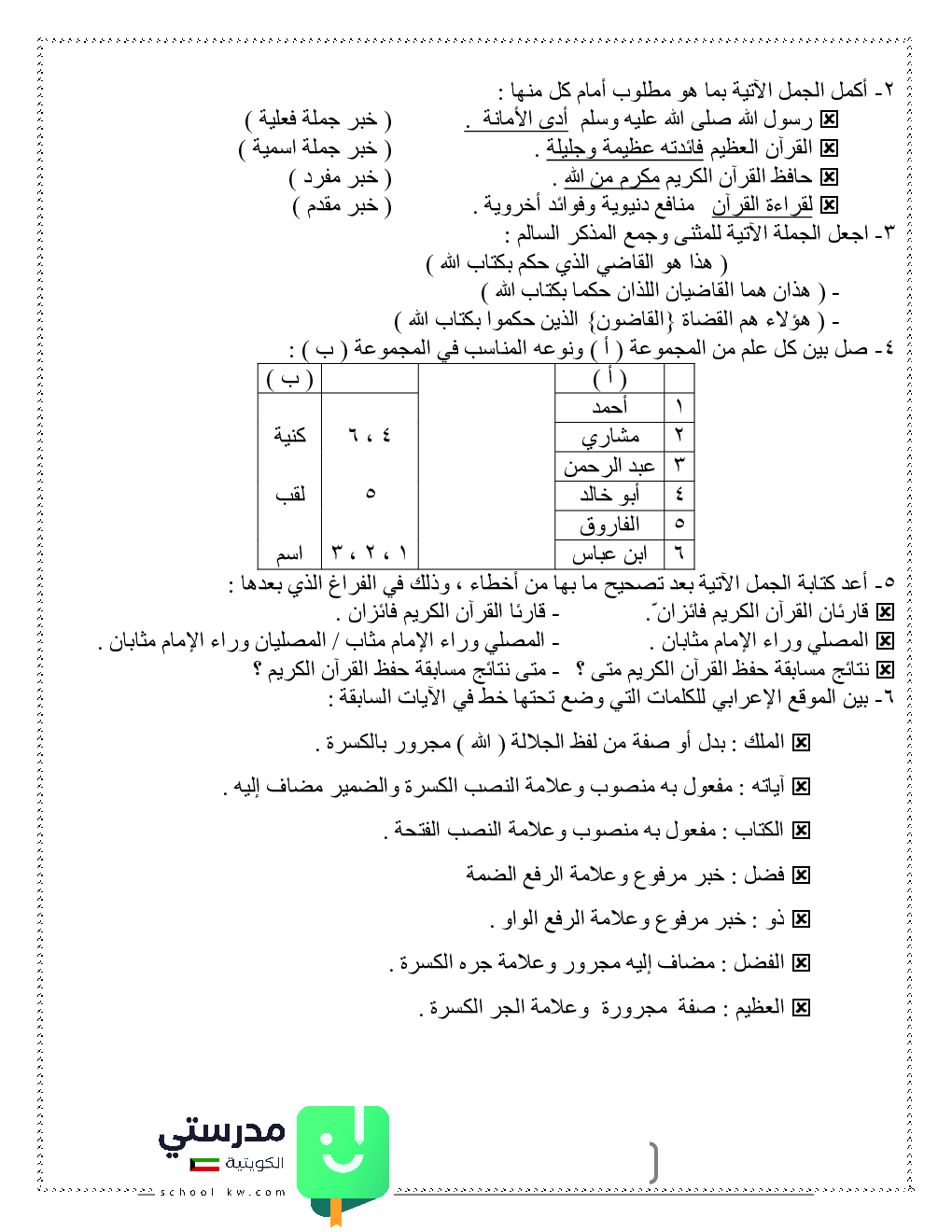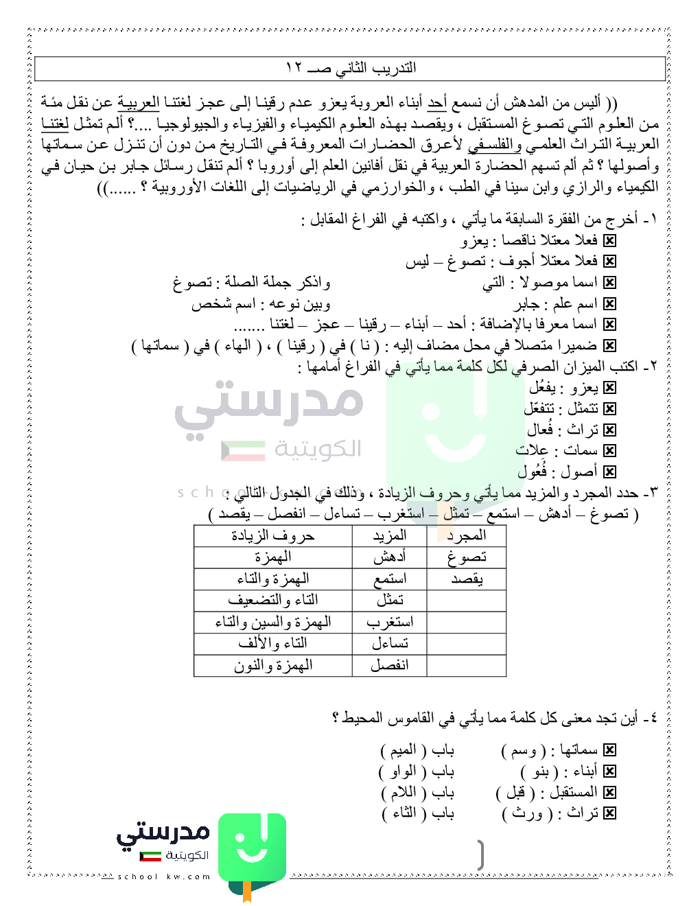 حلول تدريبات قواعد النحو والصرف