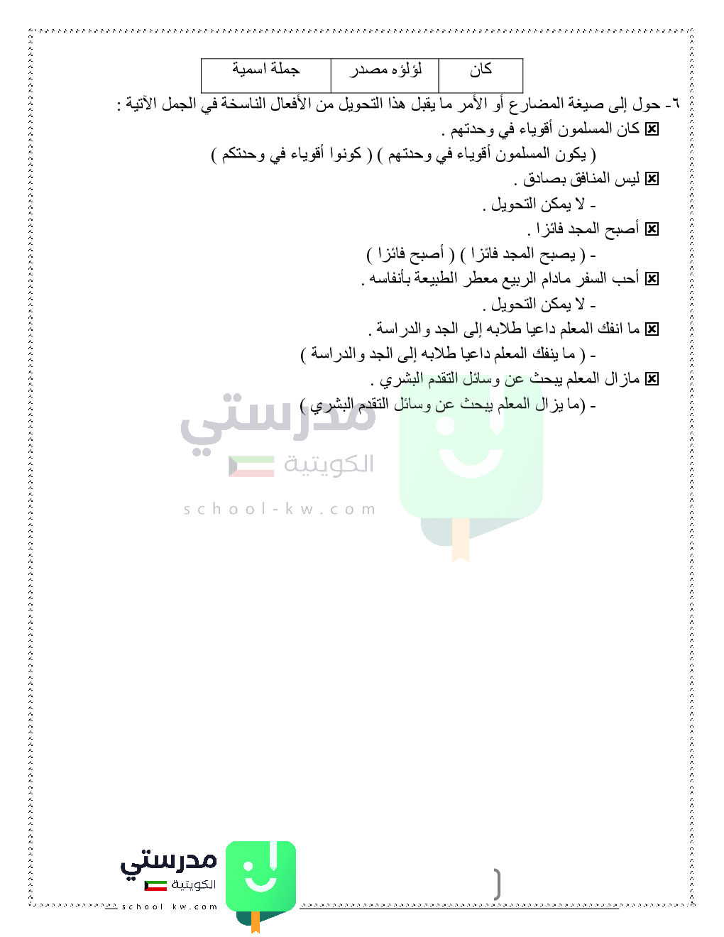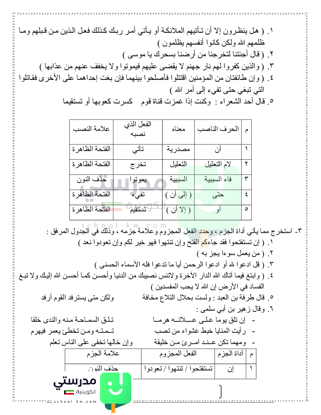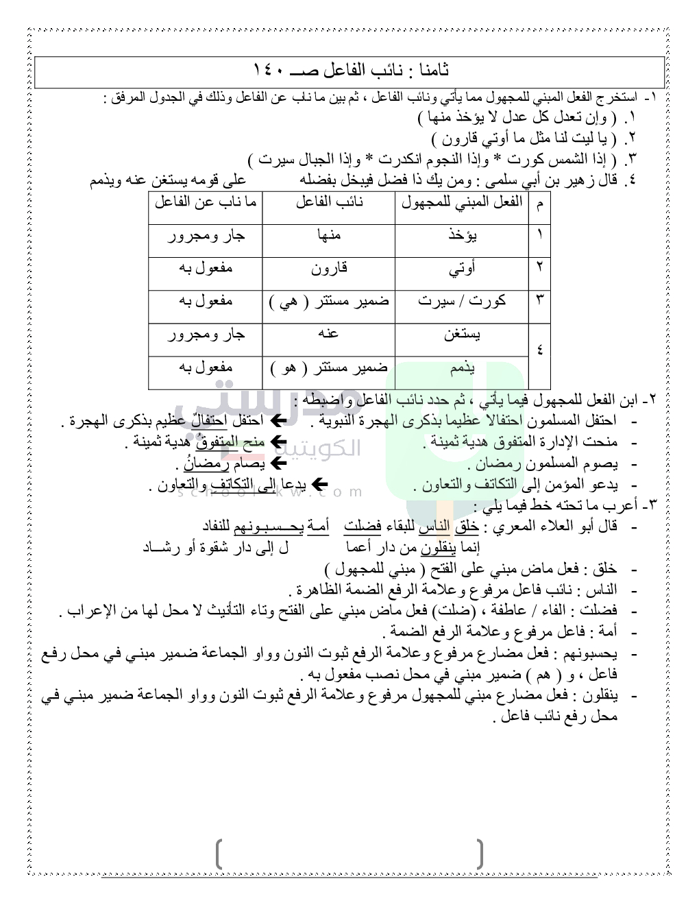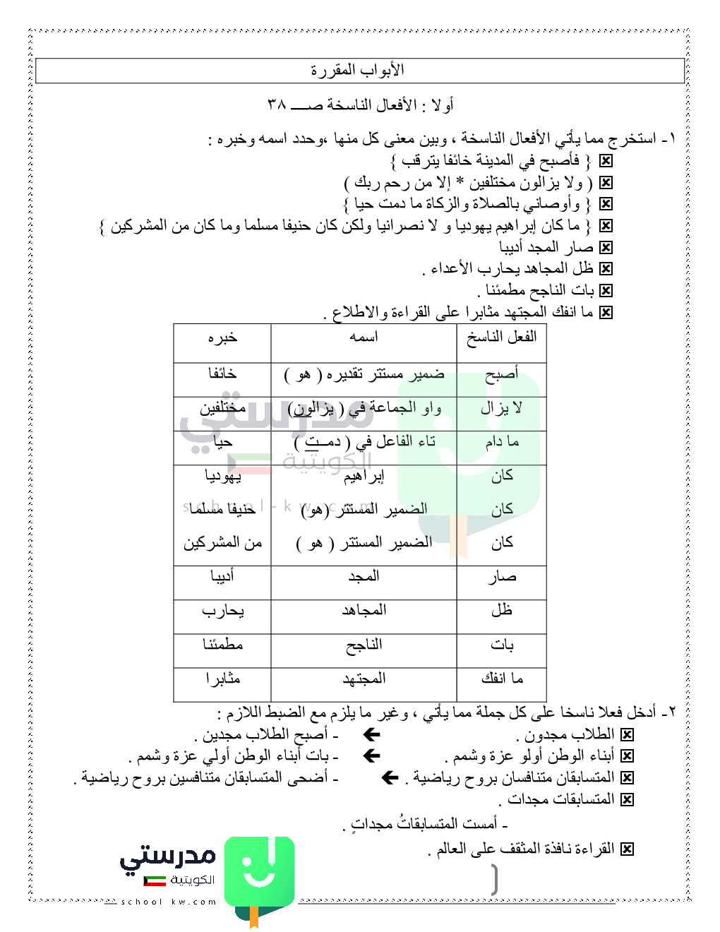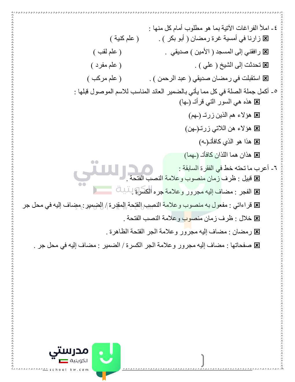 حلول تدريبات قواعد النحو والصرف