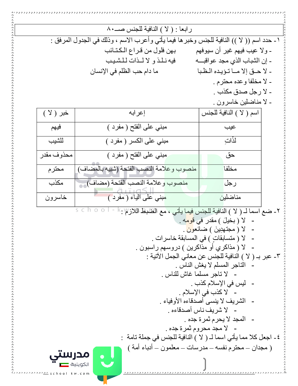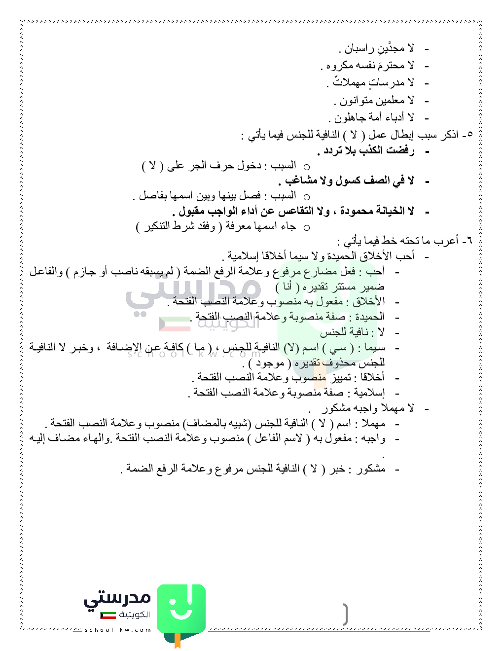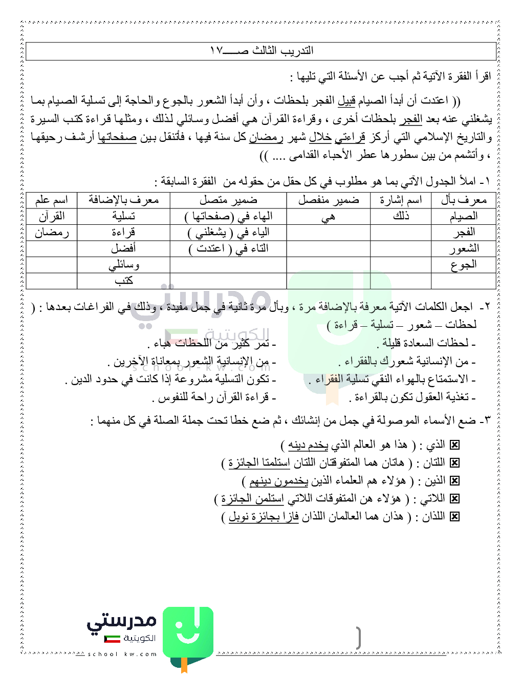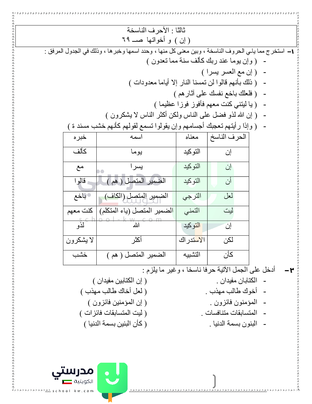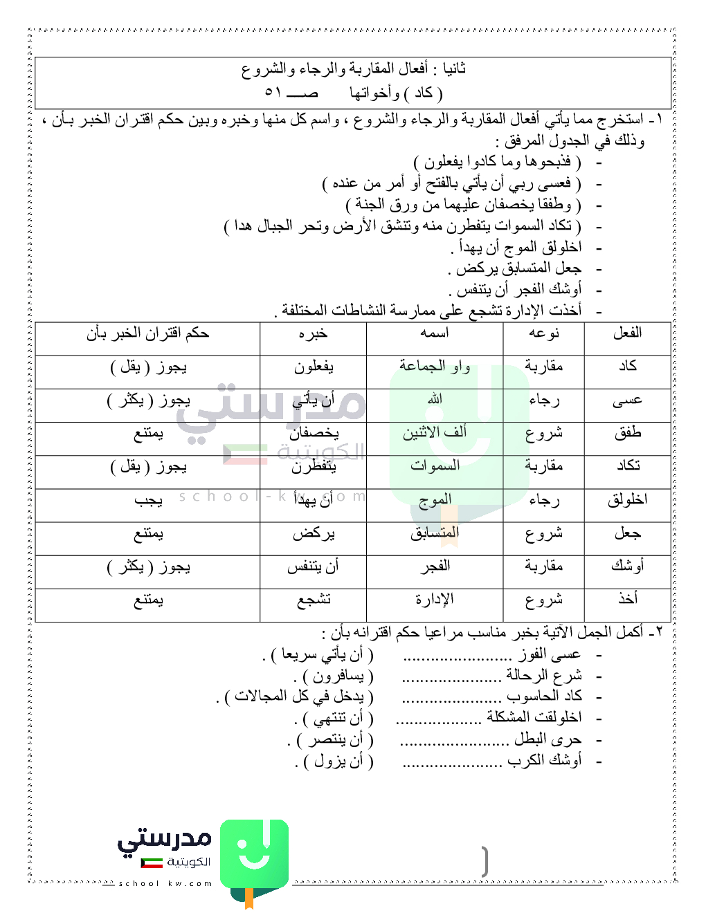 حلول تدريبات قواعد النحو والصرف