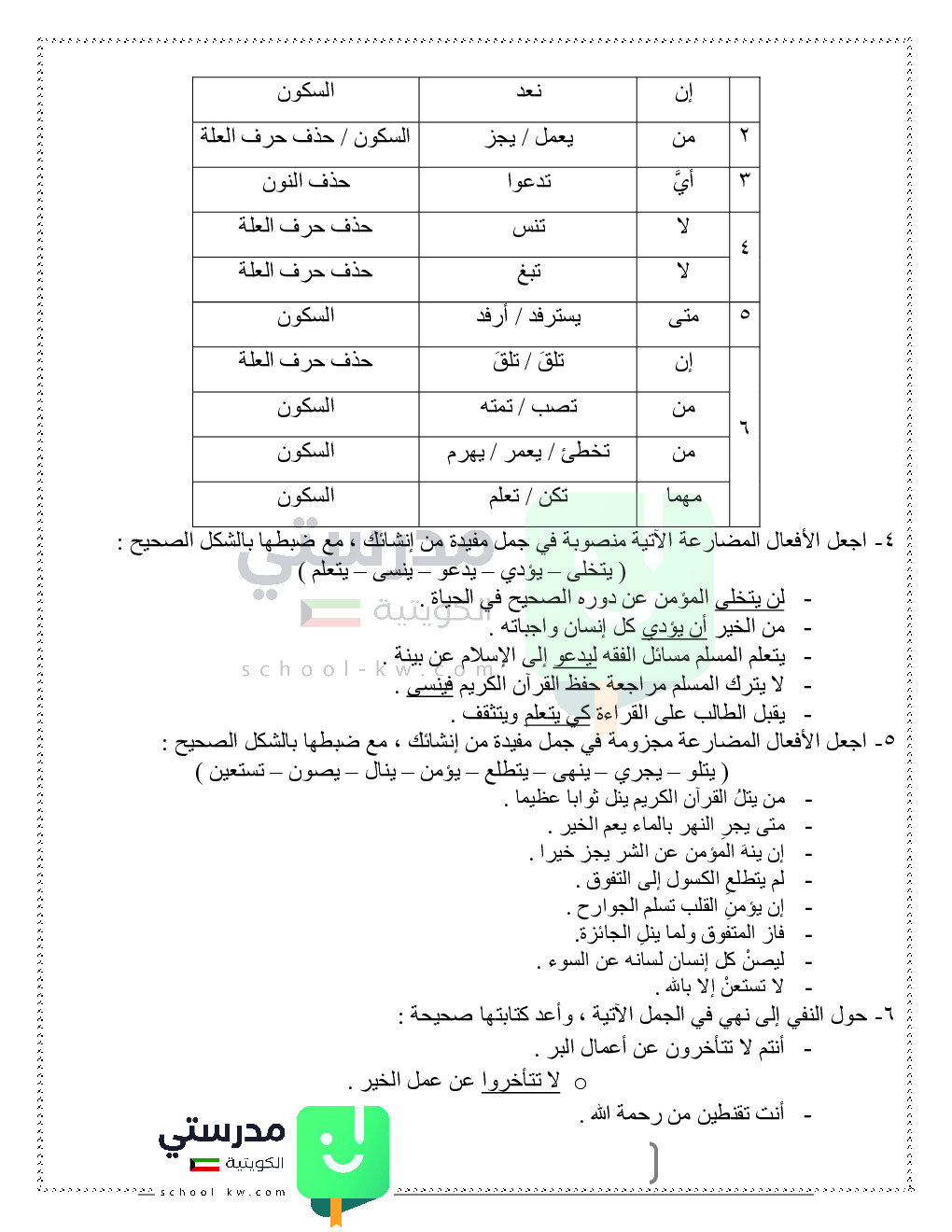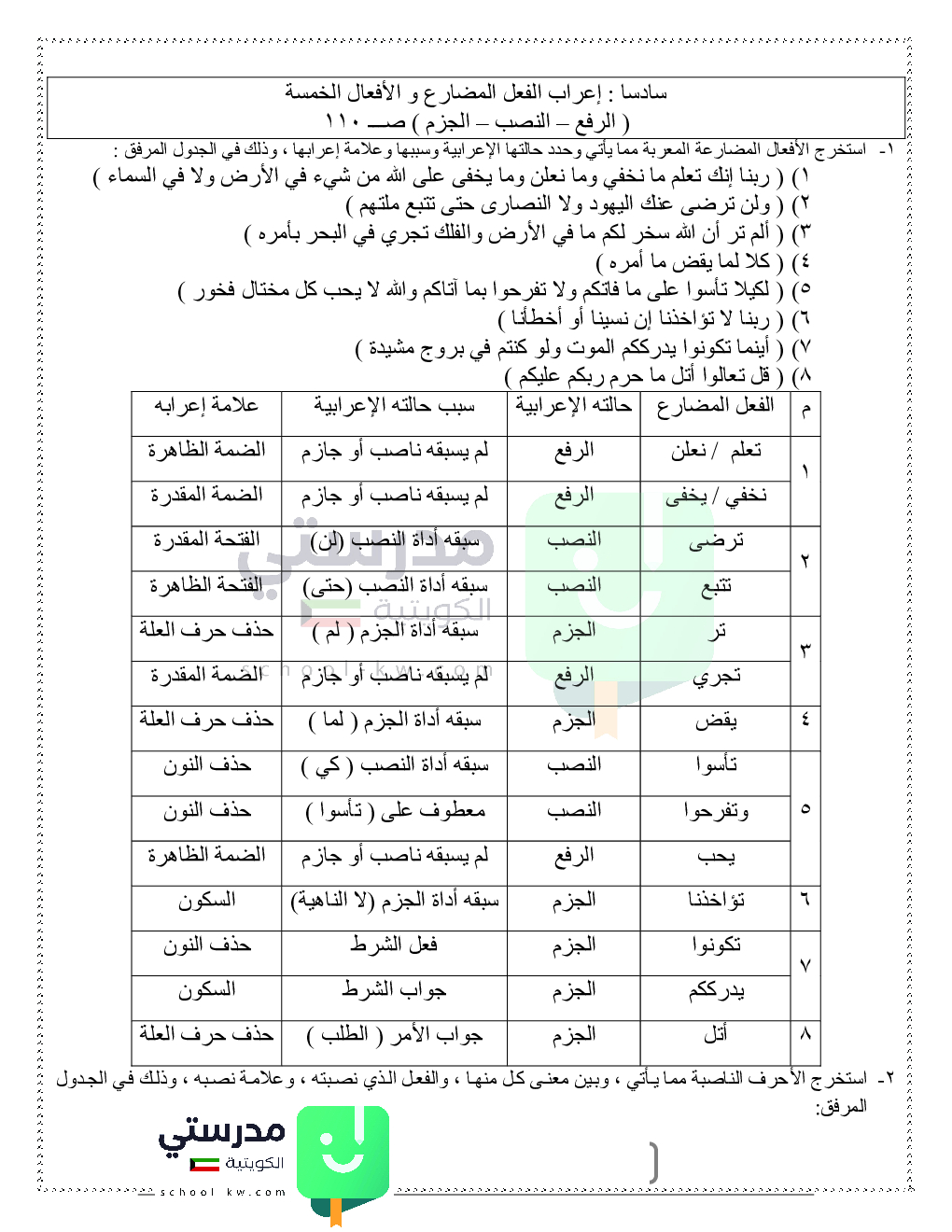 اعراب الفعل المضارع والأفعال الخمسة