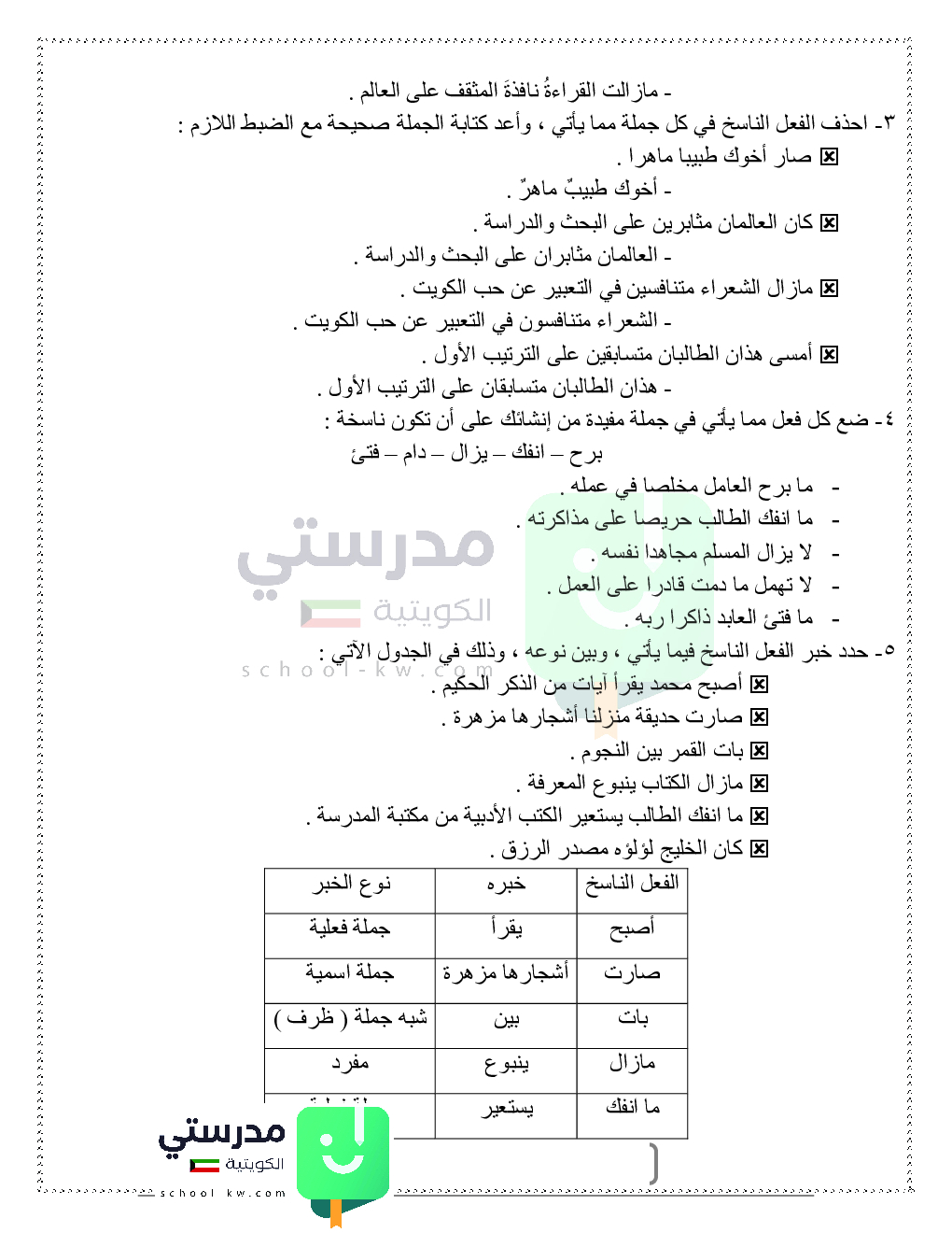 الأفعال الناسخة