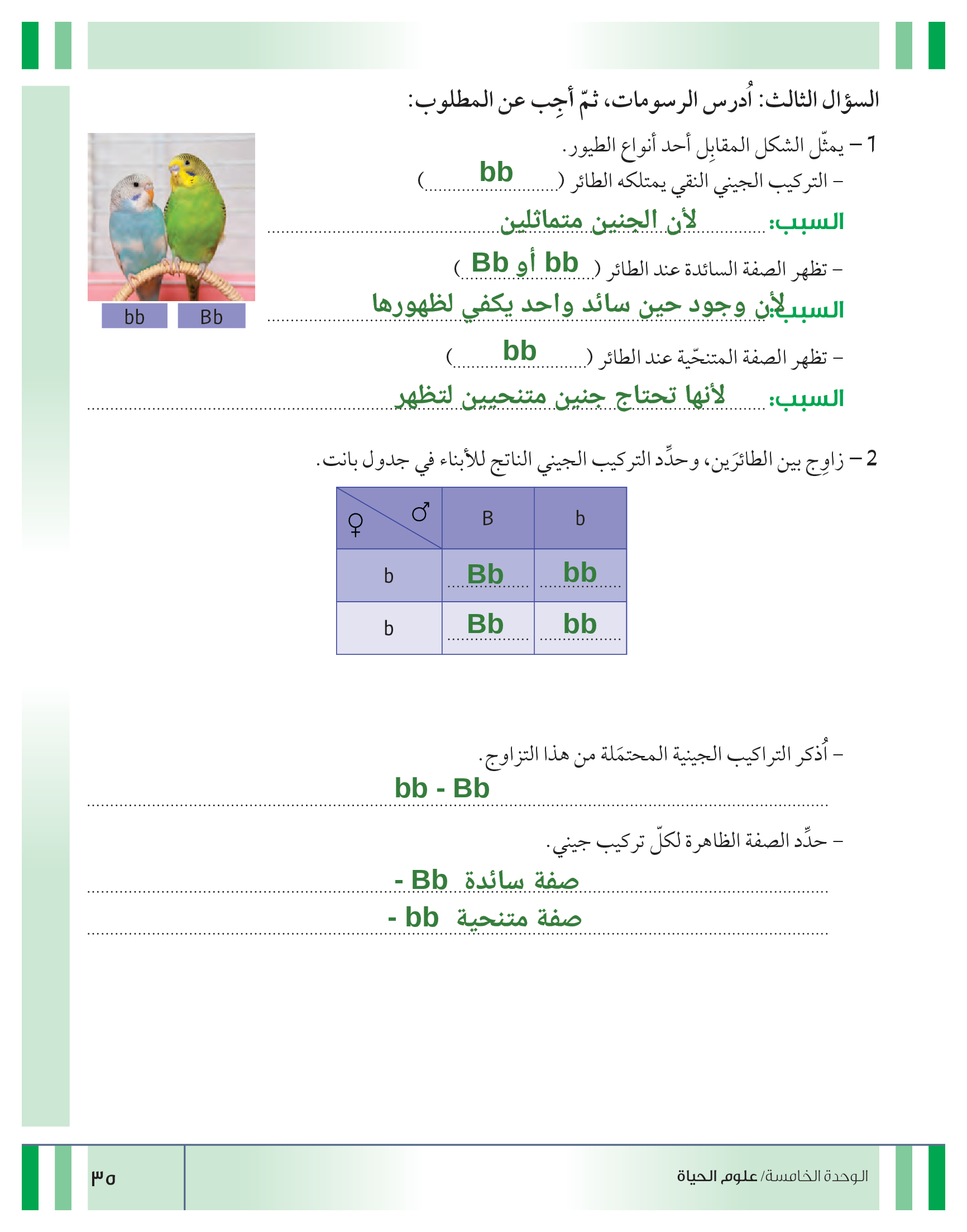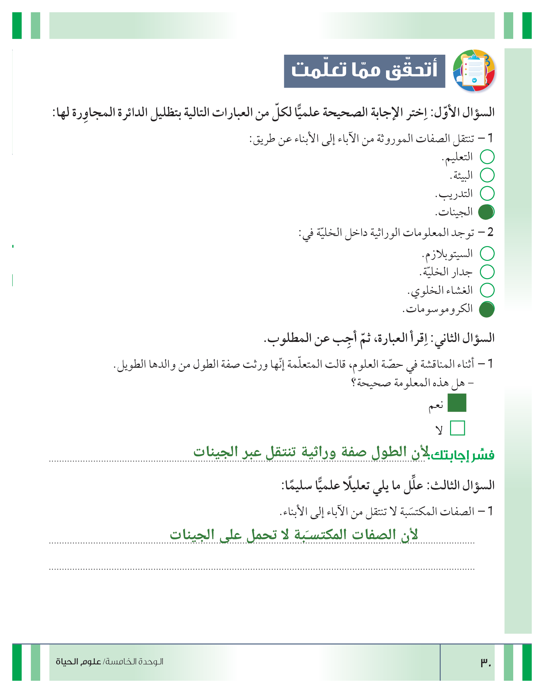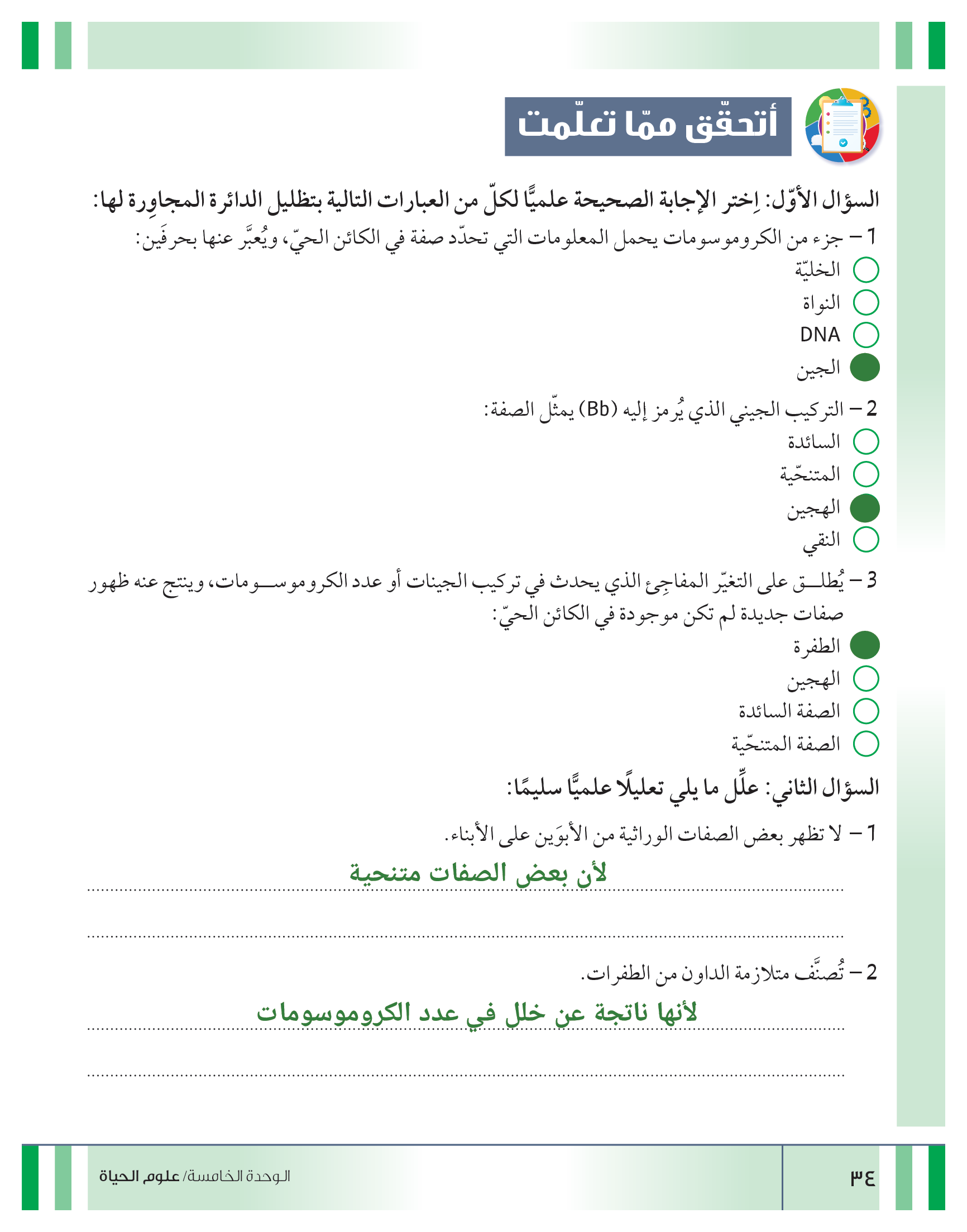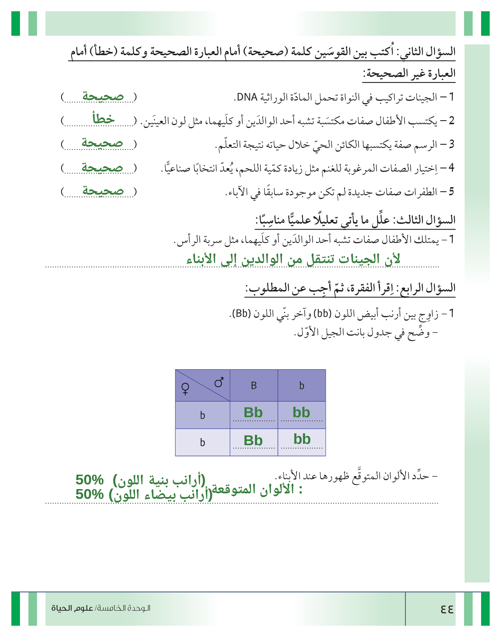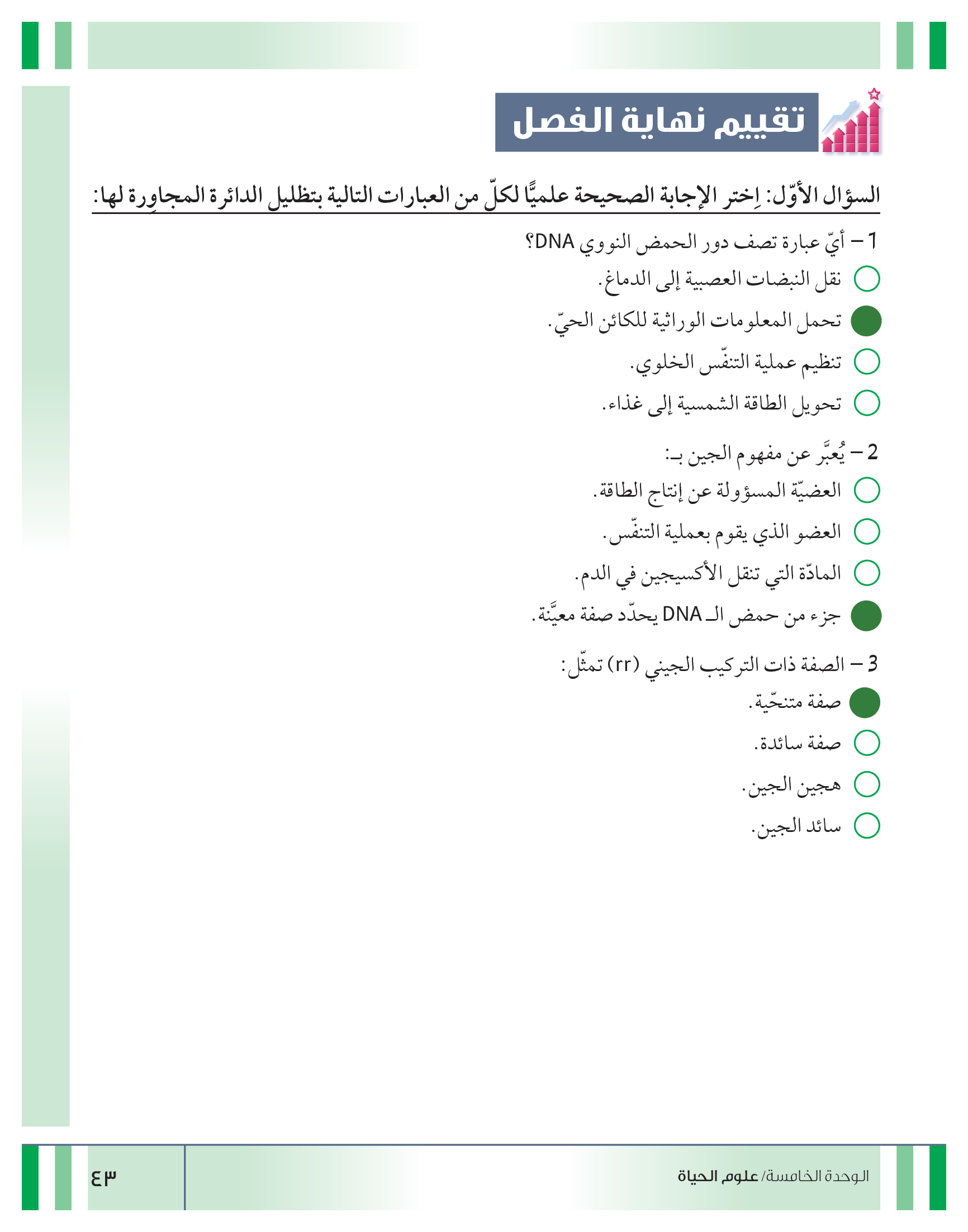 تقييم نهاية فصل الوراثة