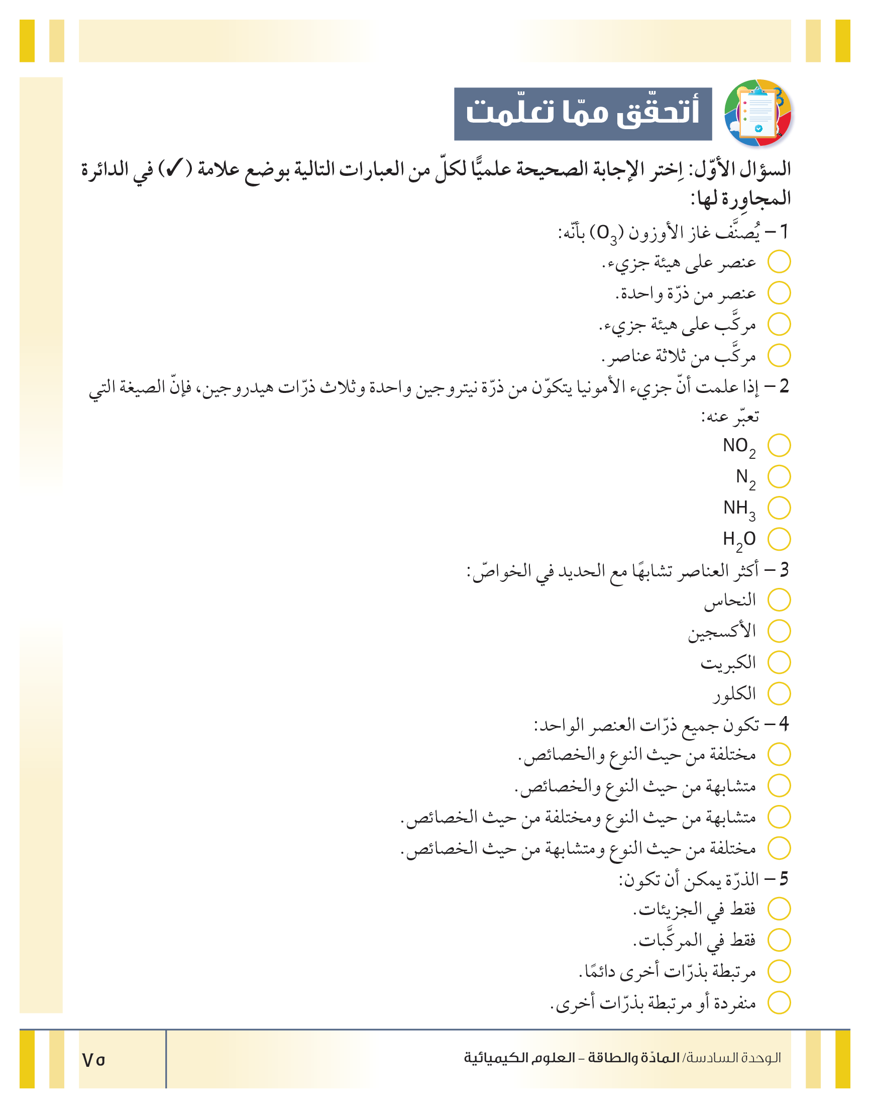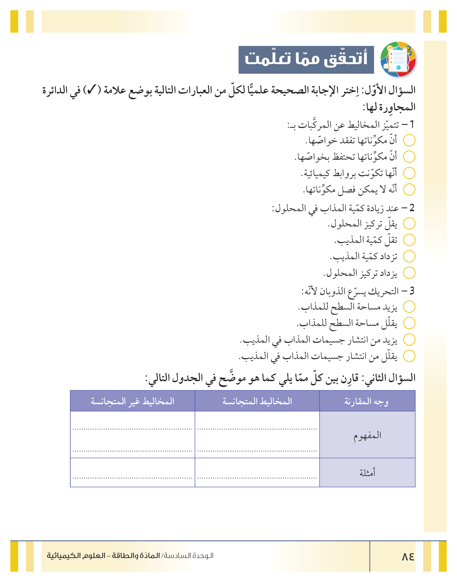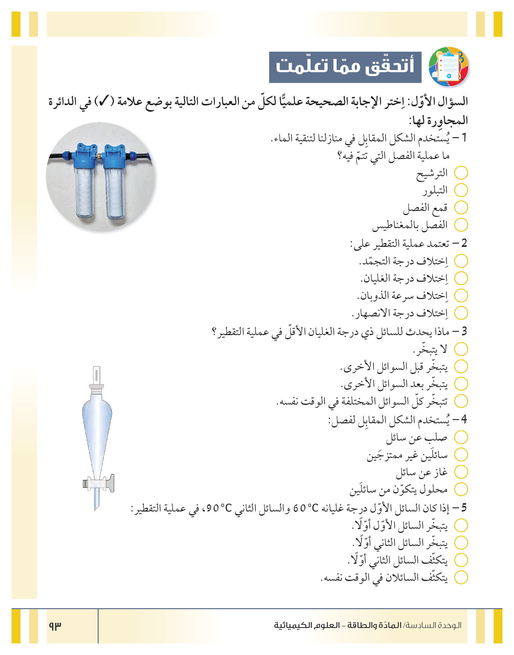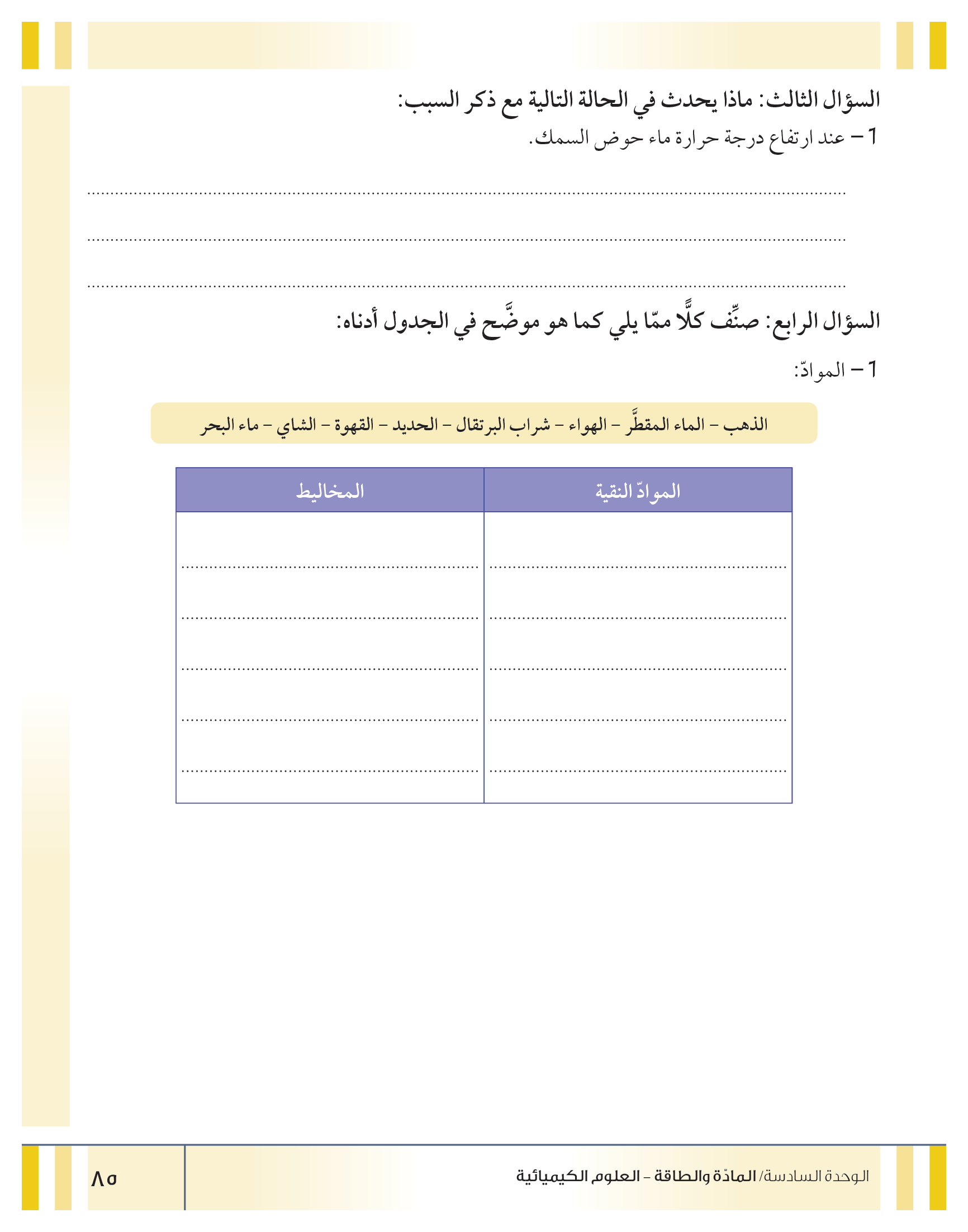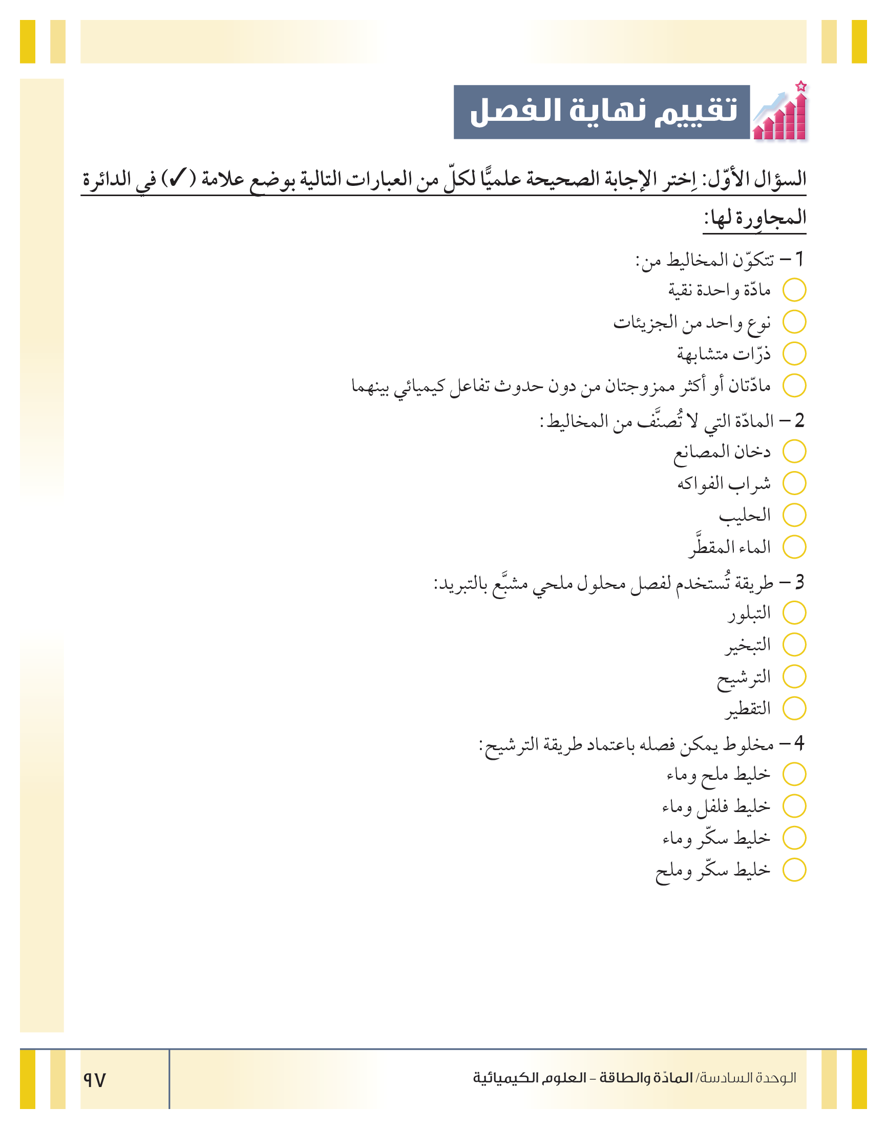تقييم نهاية فصل تصنيف المواد
