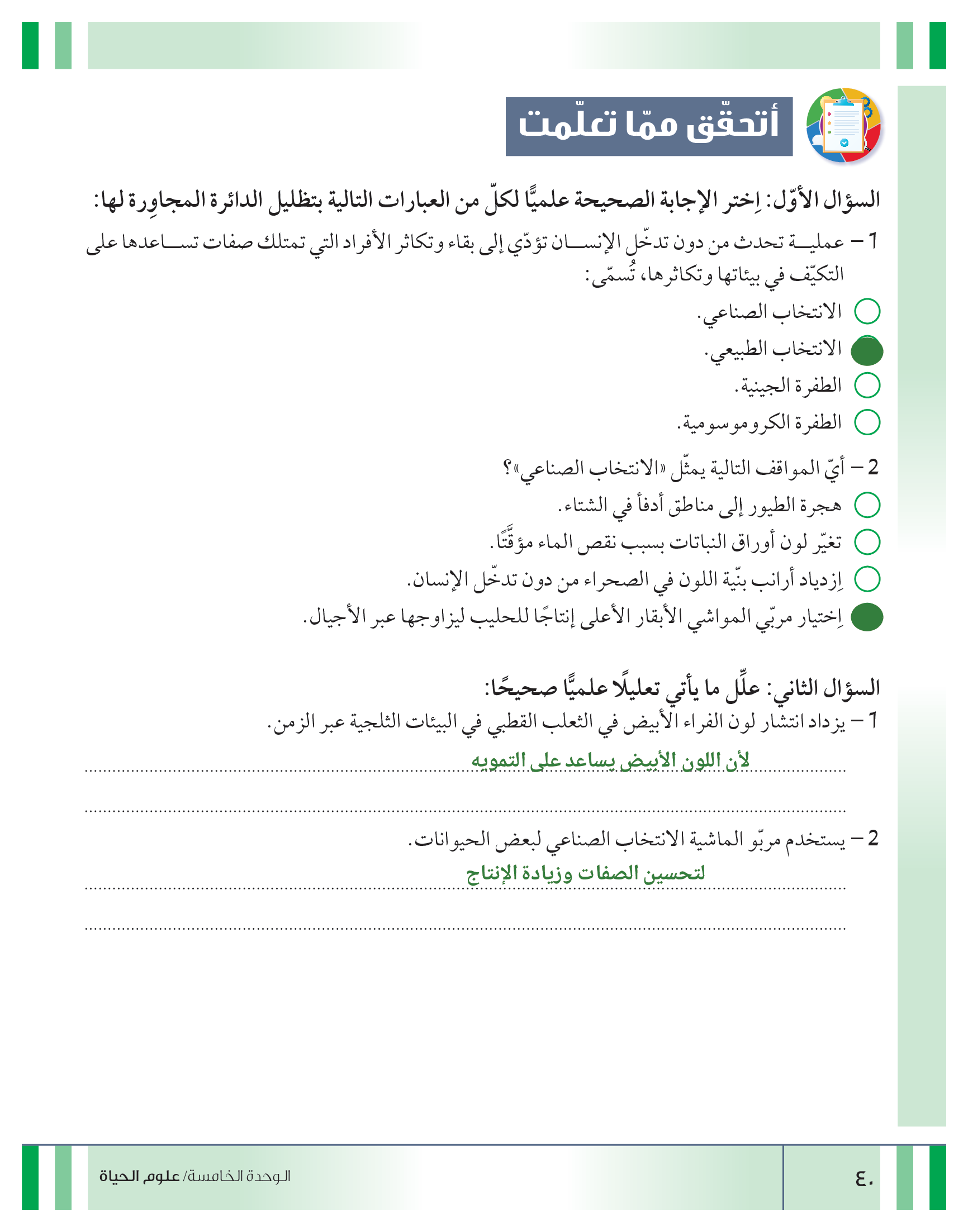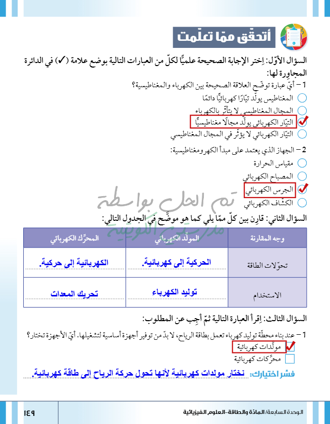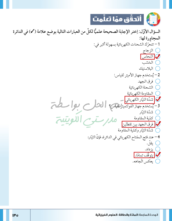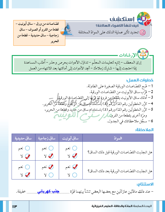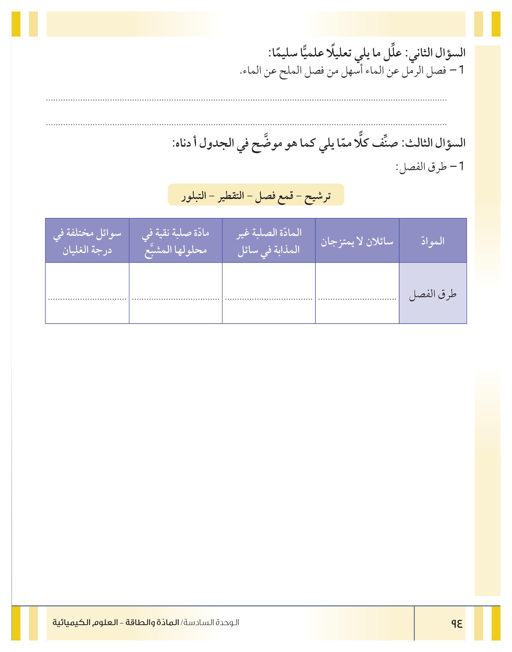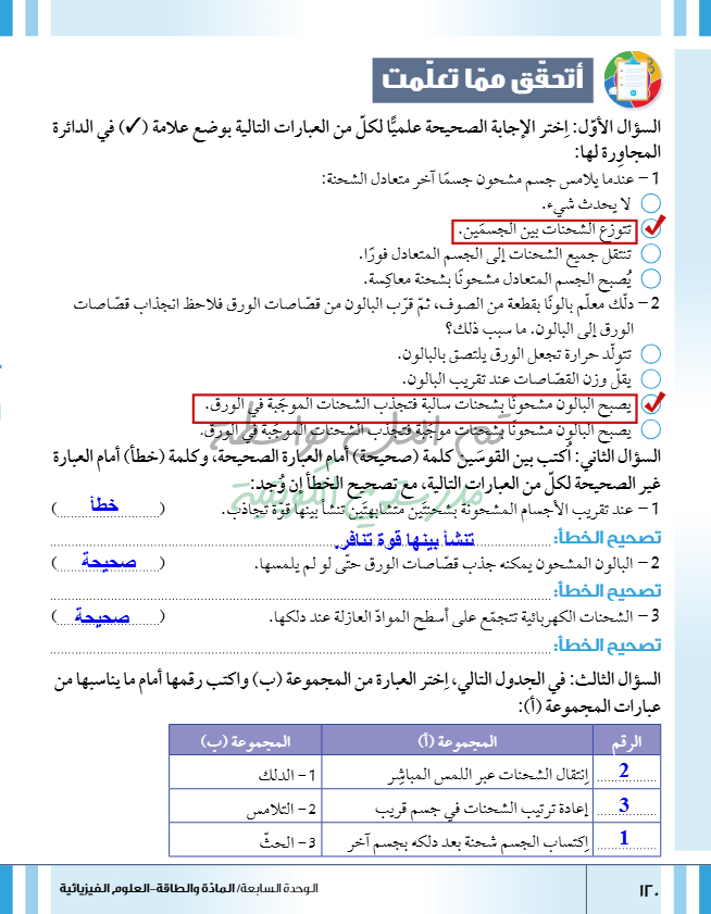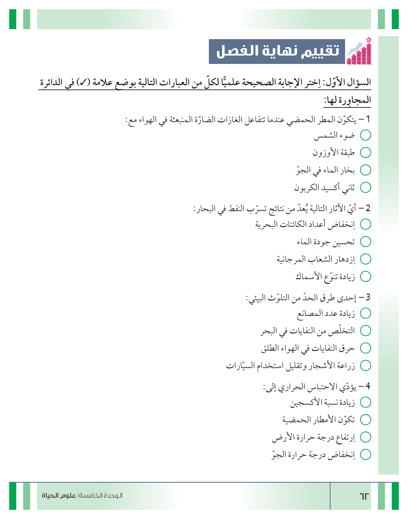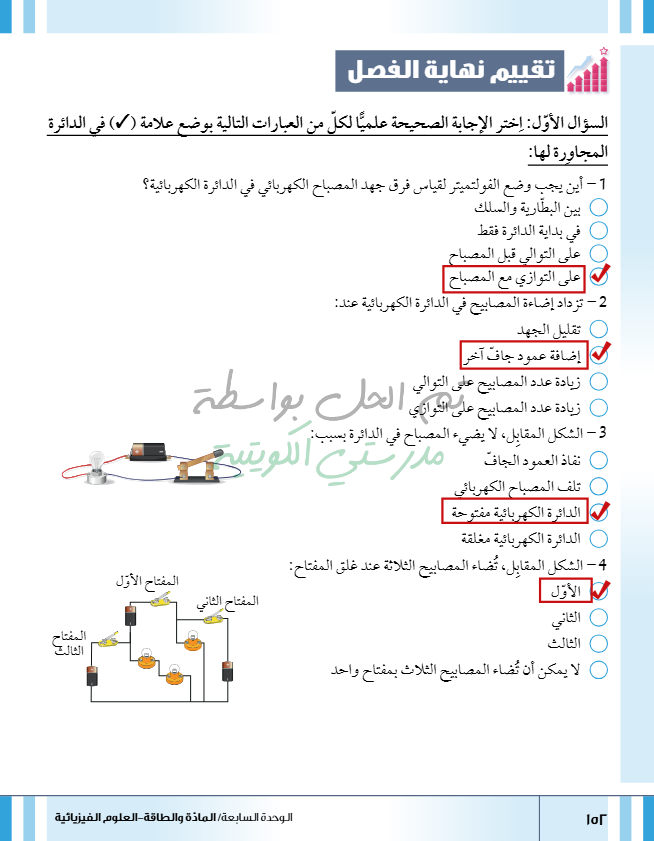 تقييم نهاية فصل تصنيف المواد