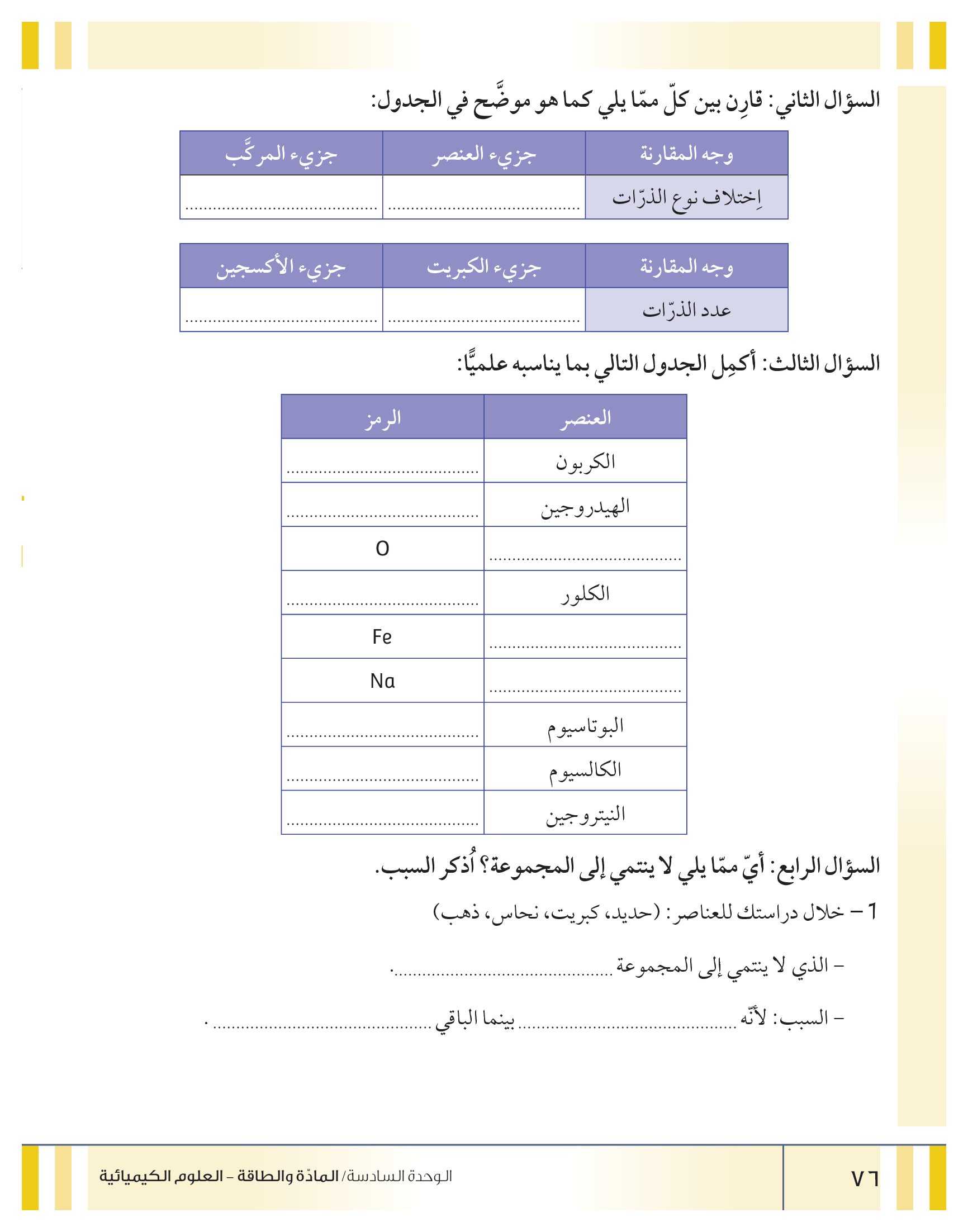 العناصر والمركبات