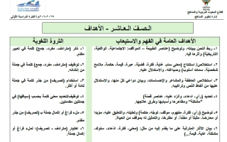 توزيع منهج عربي عاشر فصل أول #2024-2025