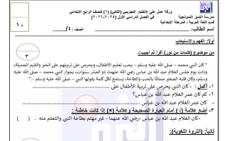 أوراق عمل الاختبار القصير الثاني تربية اسلامية الصف الرابع الفصل الأول