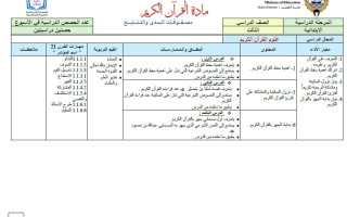 خطة منهج القرآن الكريم الصف الثالث الفصل الأول 2025-2026