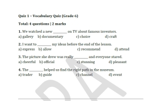 تدريب على الاختبار القصير (معاني الكلمات) لغة انجليزية الصف السادس الفصل الأول