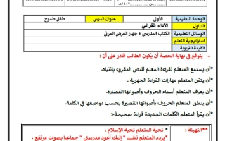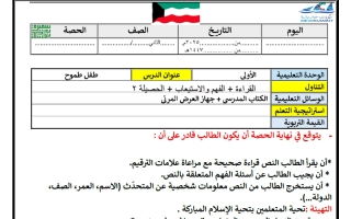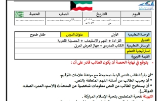 التحضير الكتابي لدرس طفل طموح (القراءة) لغة عربية الصف الثاني الفصل الأول أ سميرة بيلسان