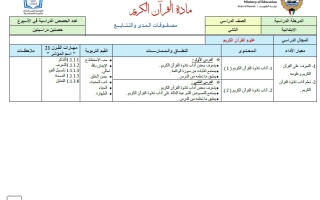خطة منهج القرآن الكريم الصف الثاني الفصل الأول 2025-2026
