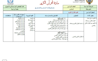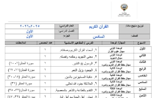 خطة منهج القرآن الكريم الصف السادس الفصل الأول 2025-2026