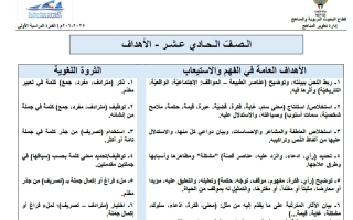 توزيع منهج عربي حادي عشر فصل أول #2024-2025