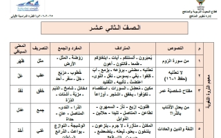 توزيع منهج عربي ثاني عشر فصل أول #2024-2025