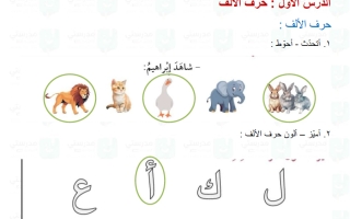 حل درس حرف الألف لغة عربية الصف الأول
