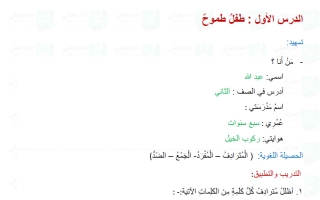 حل درس طفل طموح لغة عربية الصف الثاني