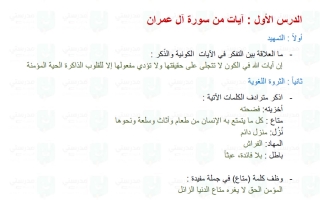 حل درس آيات من سورة آل عمران (القراءة والفهم والثروة اللغوية) لغة عربية الصف التاسع الفصل الأول