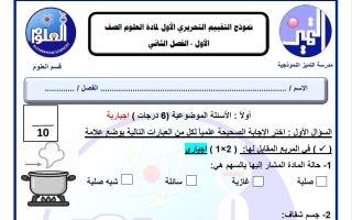 نموذج التقييم التحريري الأول علوم الصف الأول الفصل الثاني