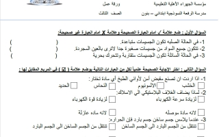 ورقة عمل علوم الصف الثالث الفصل الثاني