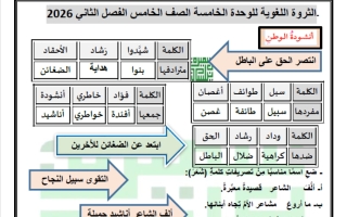 الثروة اللغوية للوحدة الخامسة لغة عربية الصف الخامس الفصل الثاني أ سميرة بيلسان