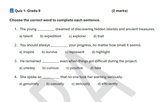 تدريب على الاختبار القصير (معاني الكلمات) لغة انجليزية الصف التاسع الفصل الأول