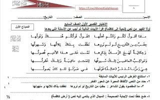 الاختبار القصير التجريبي (أ) للغة العربية الصف السابع الفصل الثاني